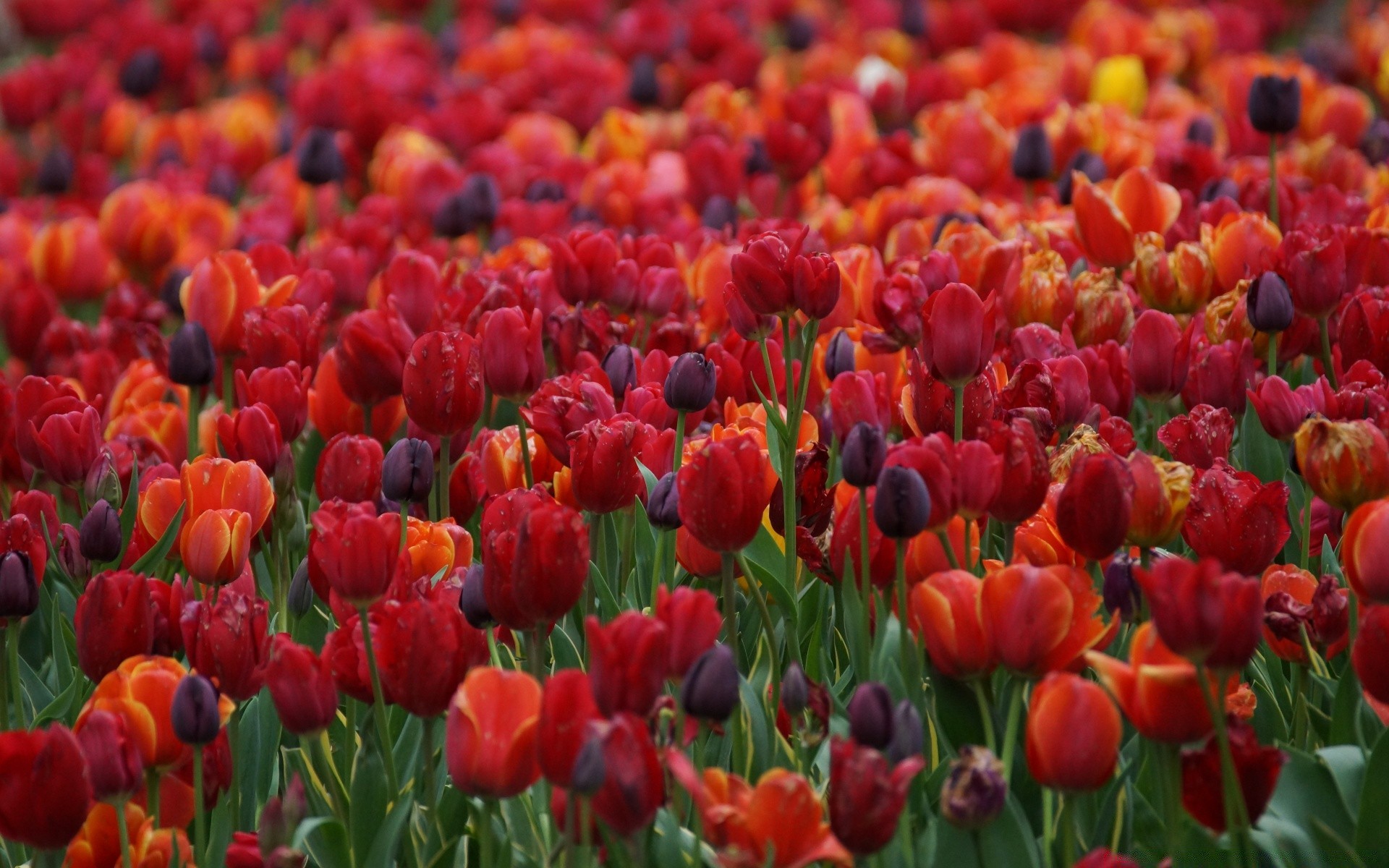 Ruisseau sinueux avec des pierres blanches le long des rives, courant au milieu d'une Prairie parsemée de fleurs