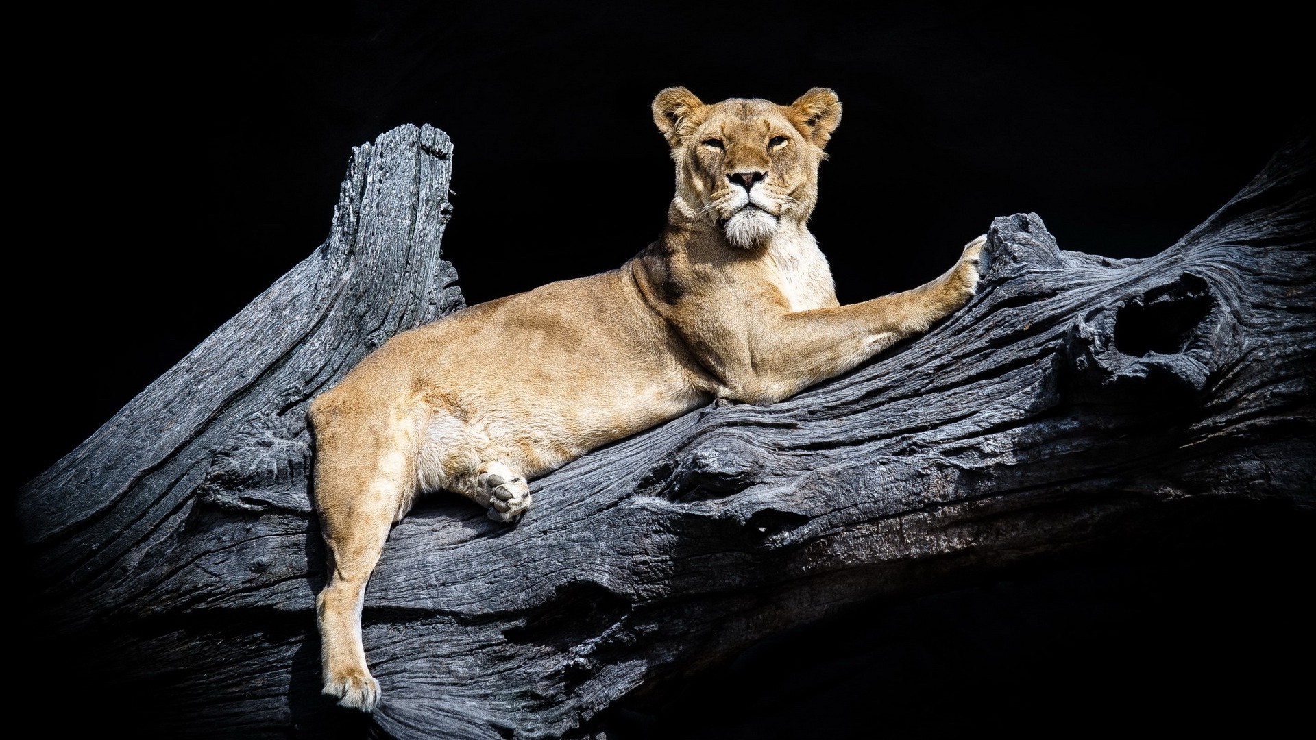 Lionne sur fond noir