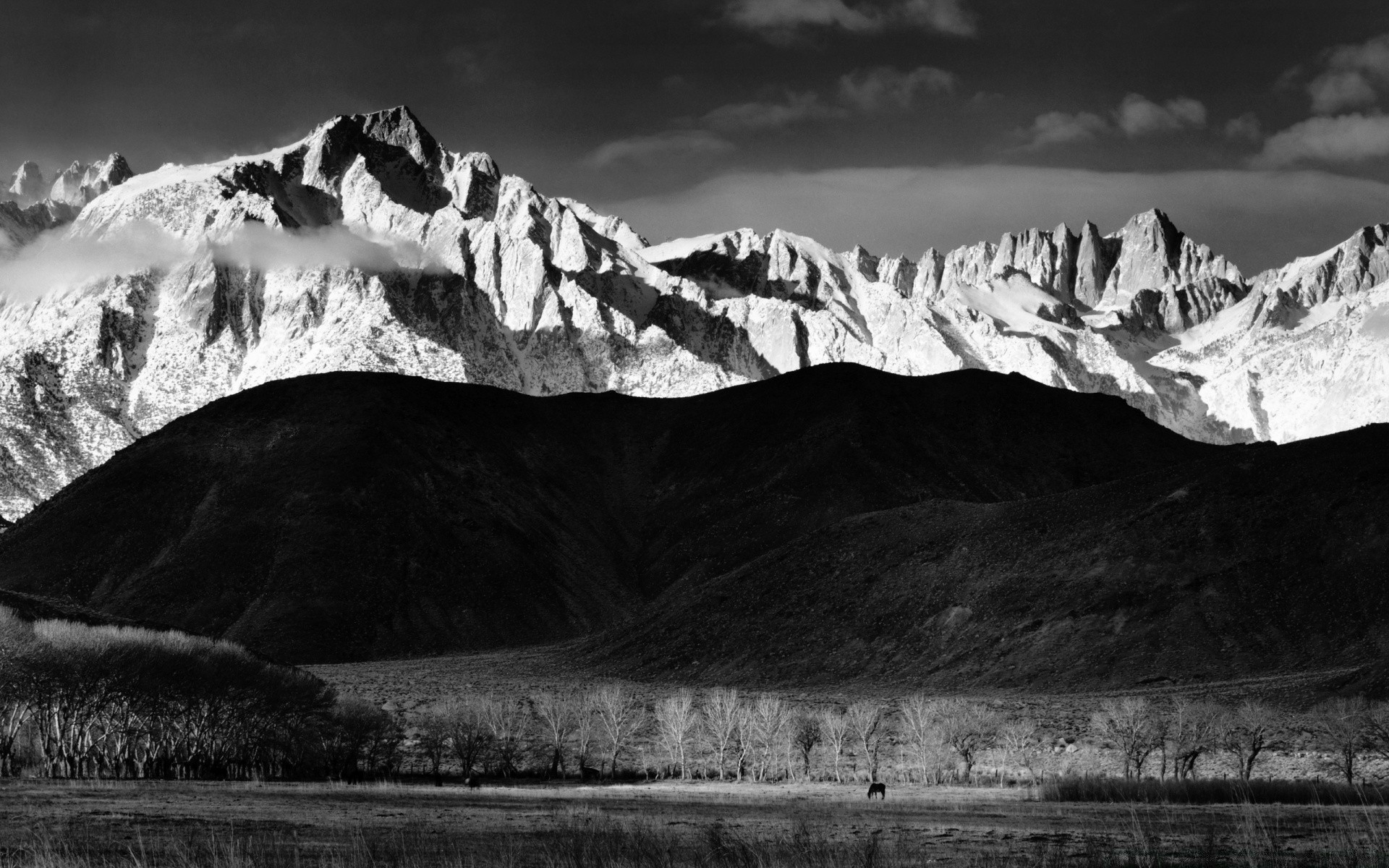 Photo en noir et blanc du paysage des montagnes du ruisseau et du Canyon