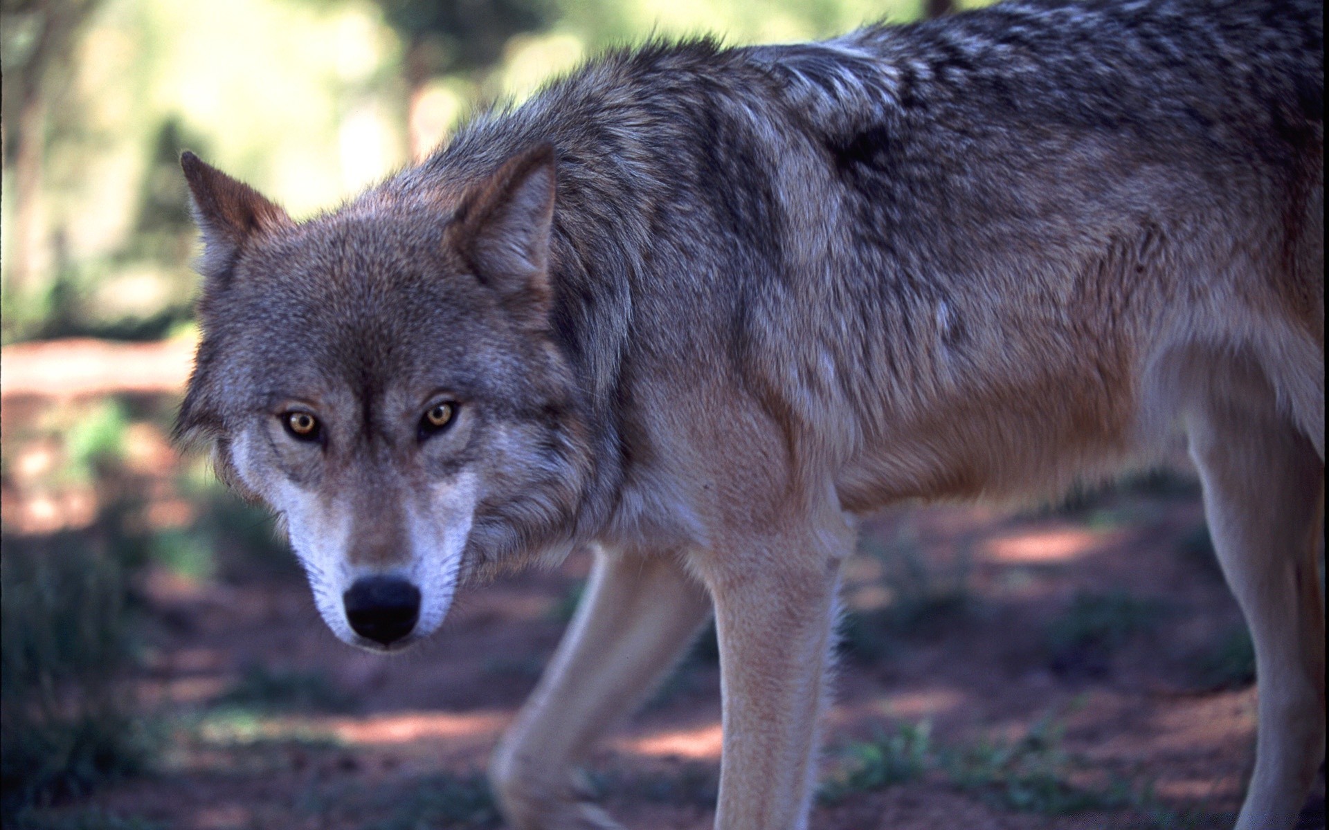 Le loup pencha la tête et se méfie de la caméra