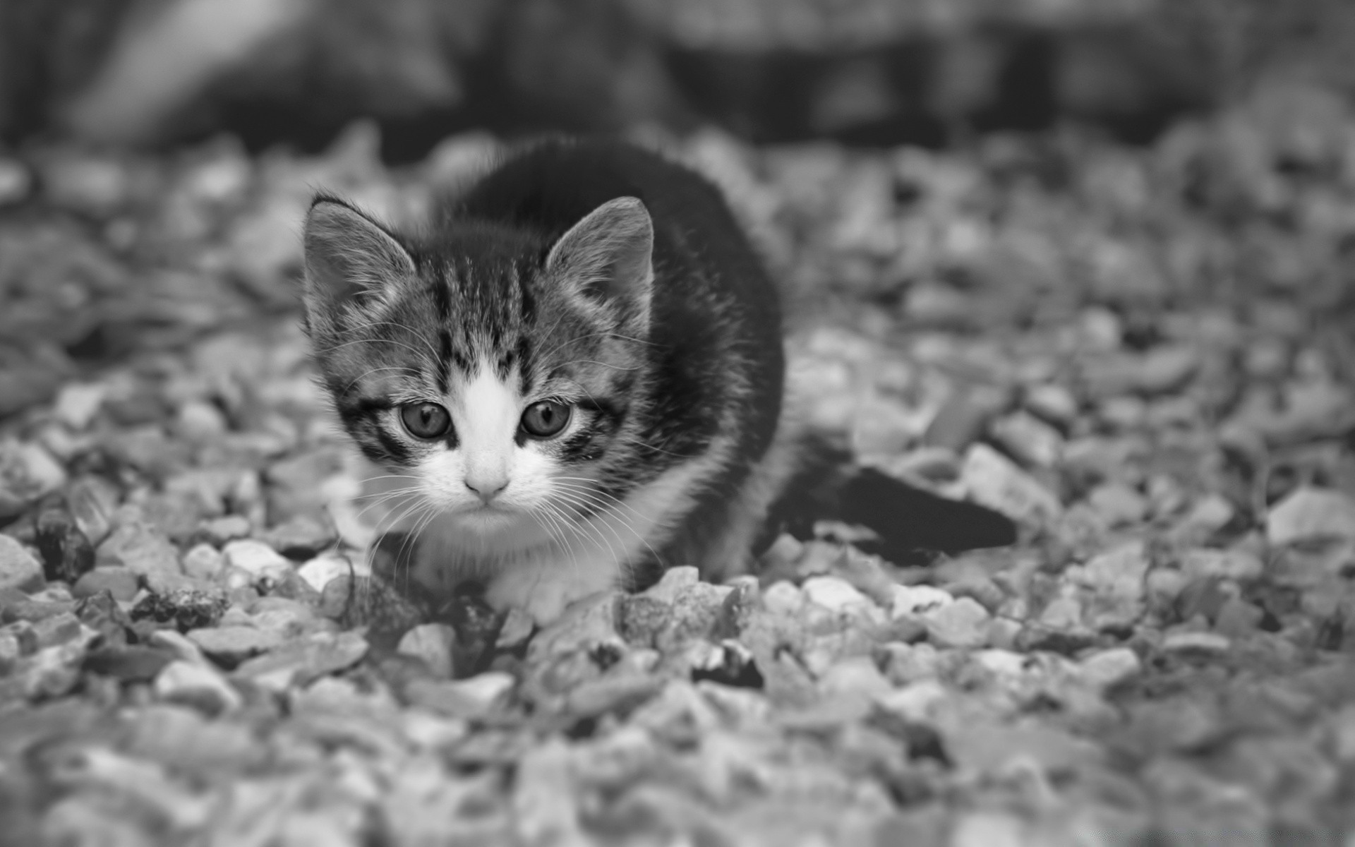 Mignon petit chaton sur les cailloux