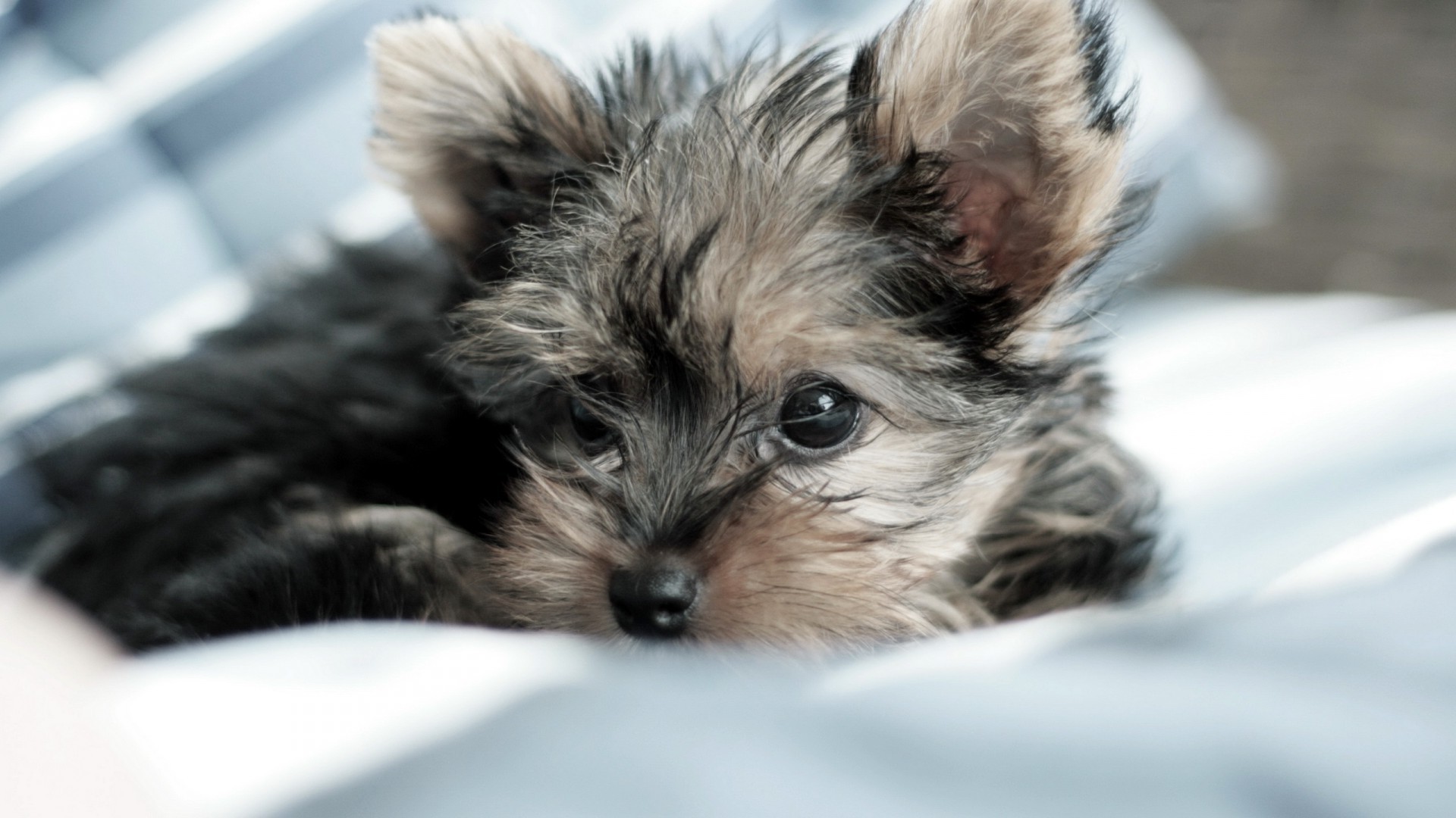 Animal. Chien mignon sur une couverture