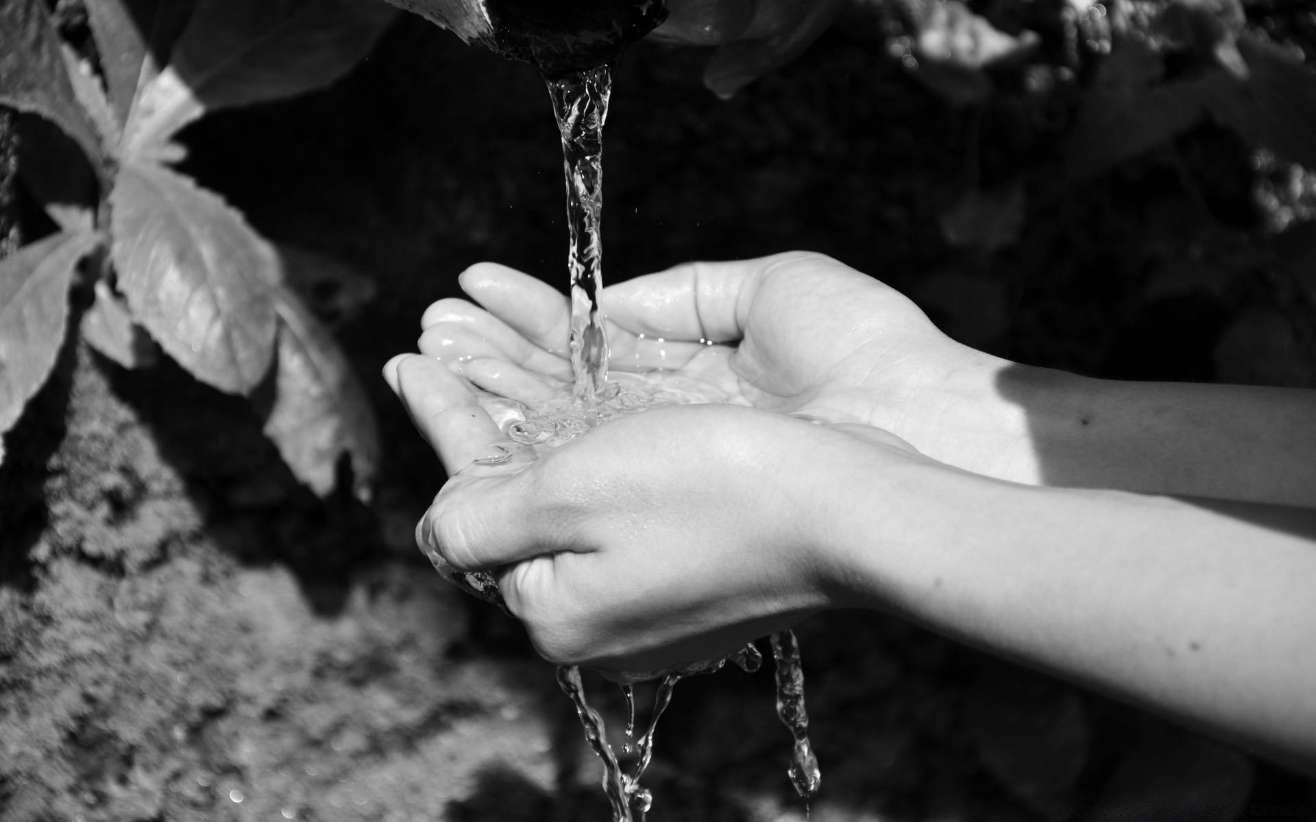 L'eau coule dans la paume de votre main