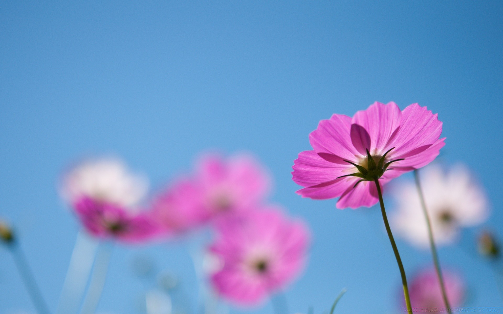 Fleurs de cerisiers en fleurs parmi le feuillage sur fond de ciel bleu