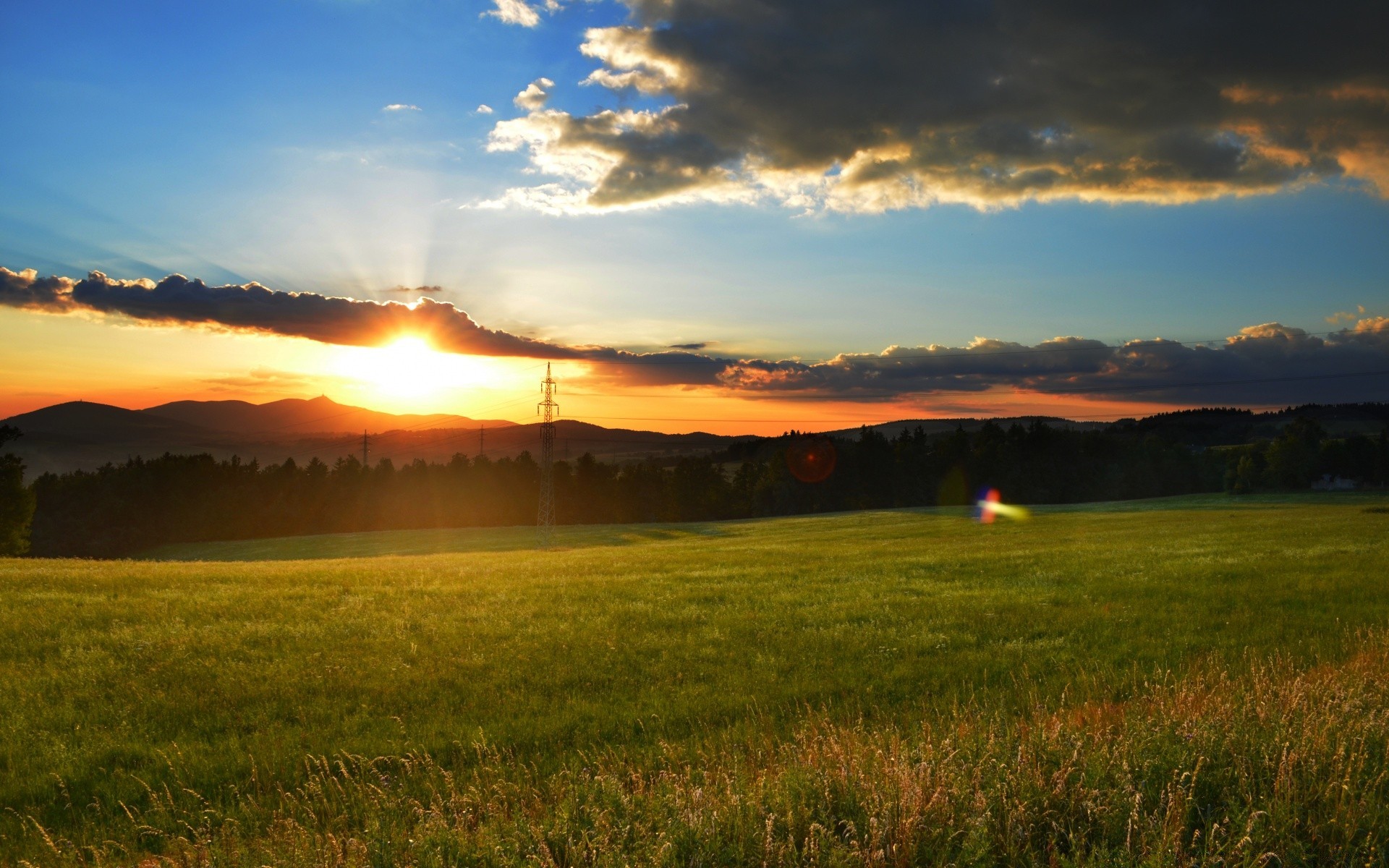 Les cascades coulent doucement dans la rivière ci-dessous et le ciel