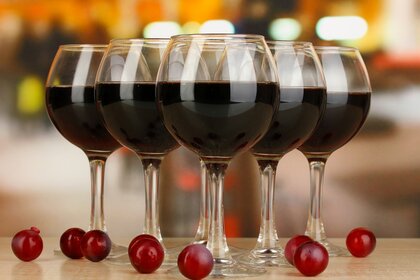 Cinq verres de vin rouge et de baies