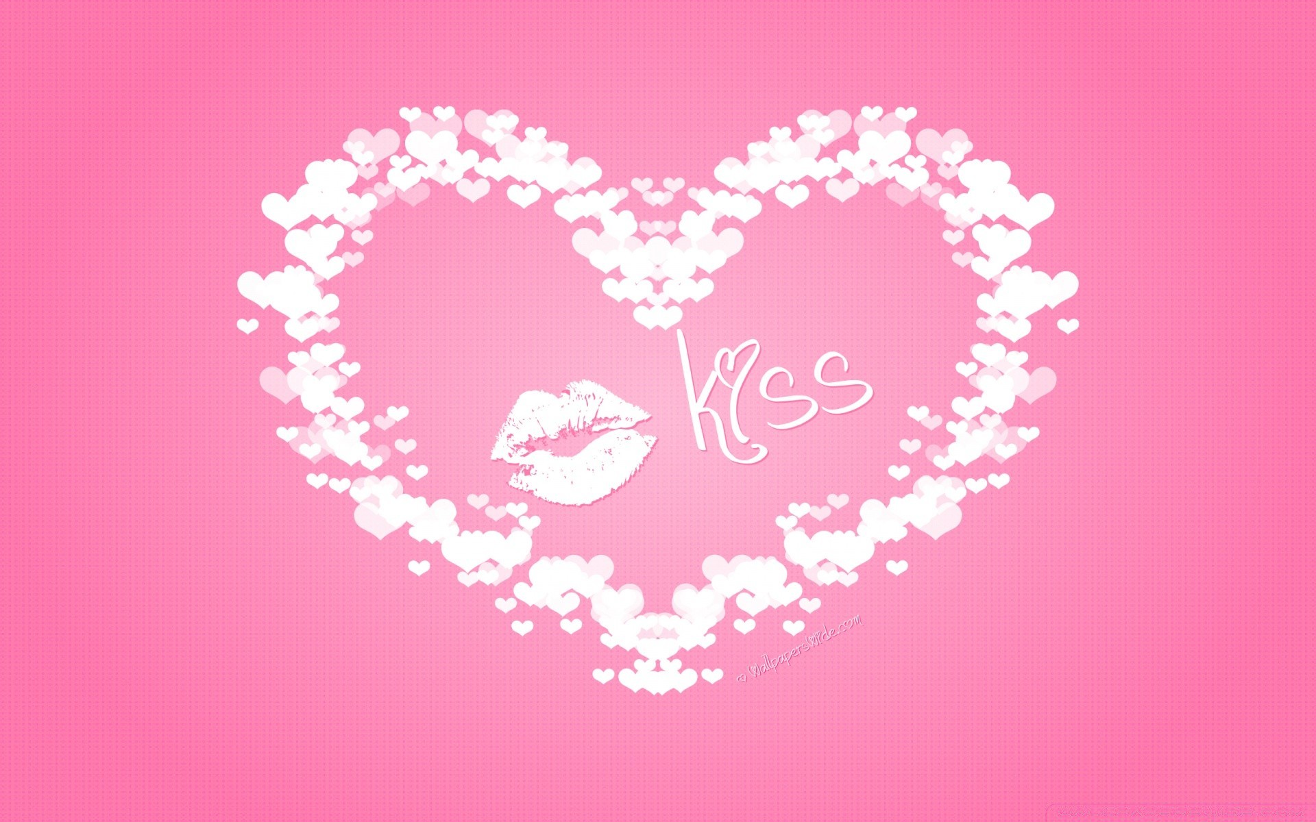 Carte postale en rose avec coeur, inscription et lèvres pour la Saint-Valentin