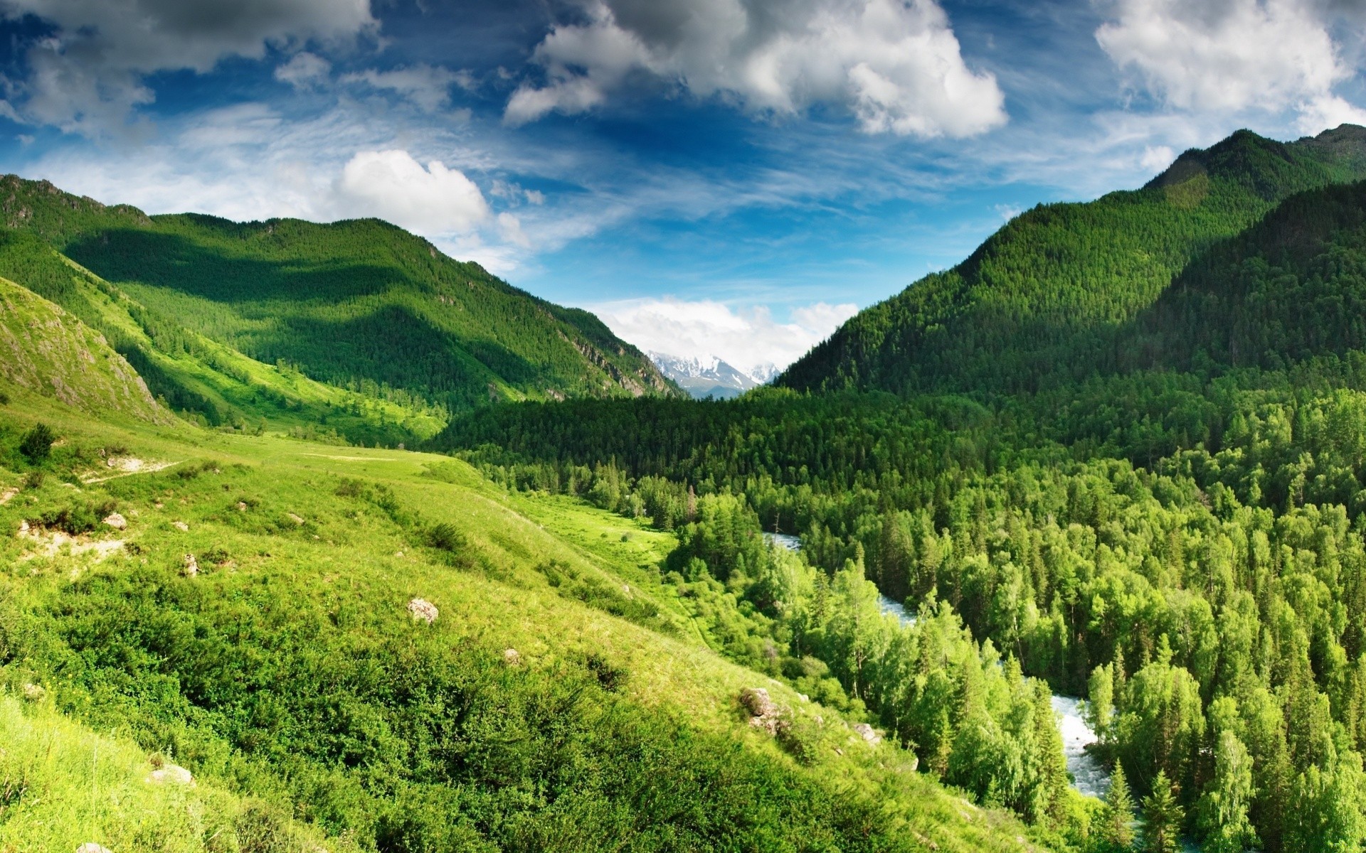 Les rayons du soleil se frayent un chemin à travers les nuages au-dessus des montagnes