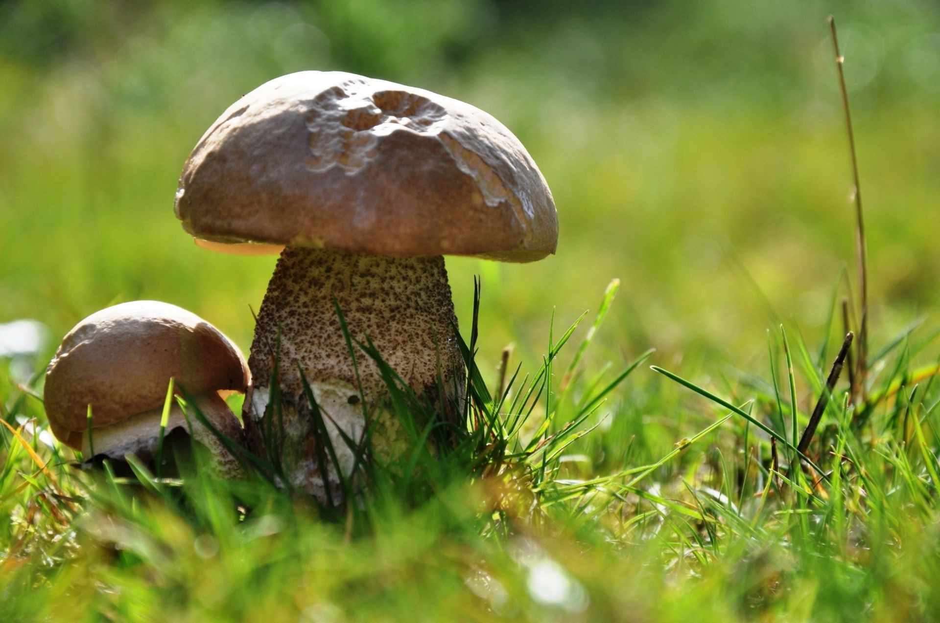 Champignons en croissance sur un arbre couché recouvert de mousse