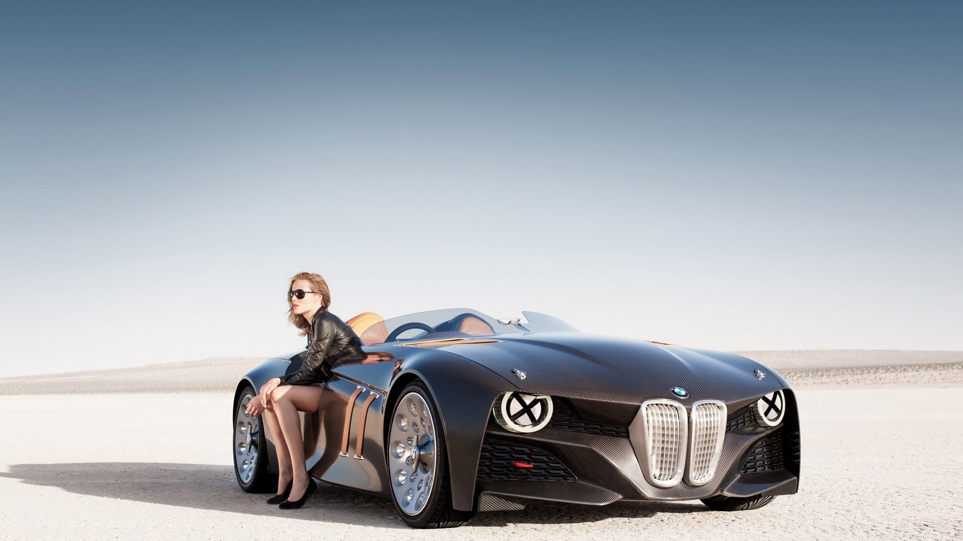 Voiture BMW chic avec une fille sur un fond de ciel agréable
