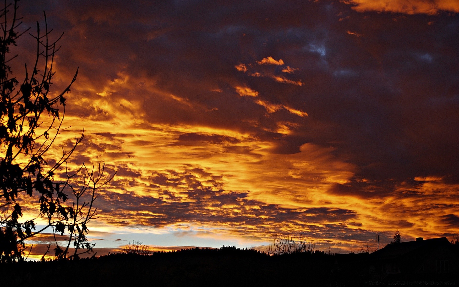 Coucher de soleil à travers les nuages sur le ciel du soir