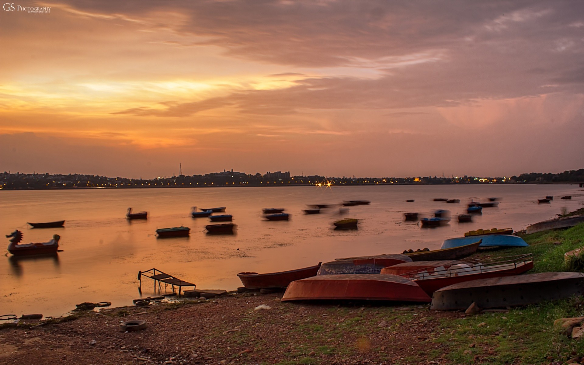 Beau coucher de soleil au bord de l'eau avec le reflet des rayons du soleil
