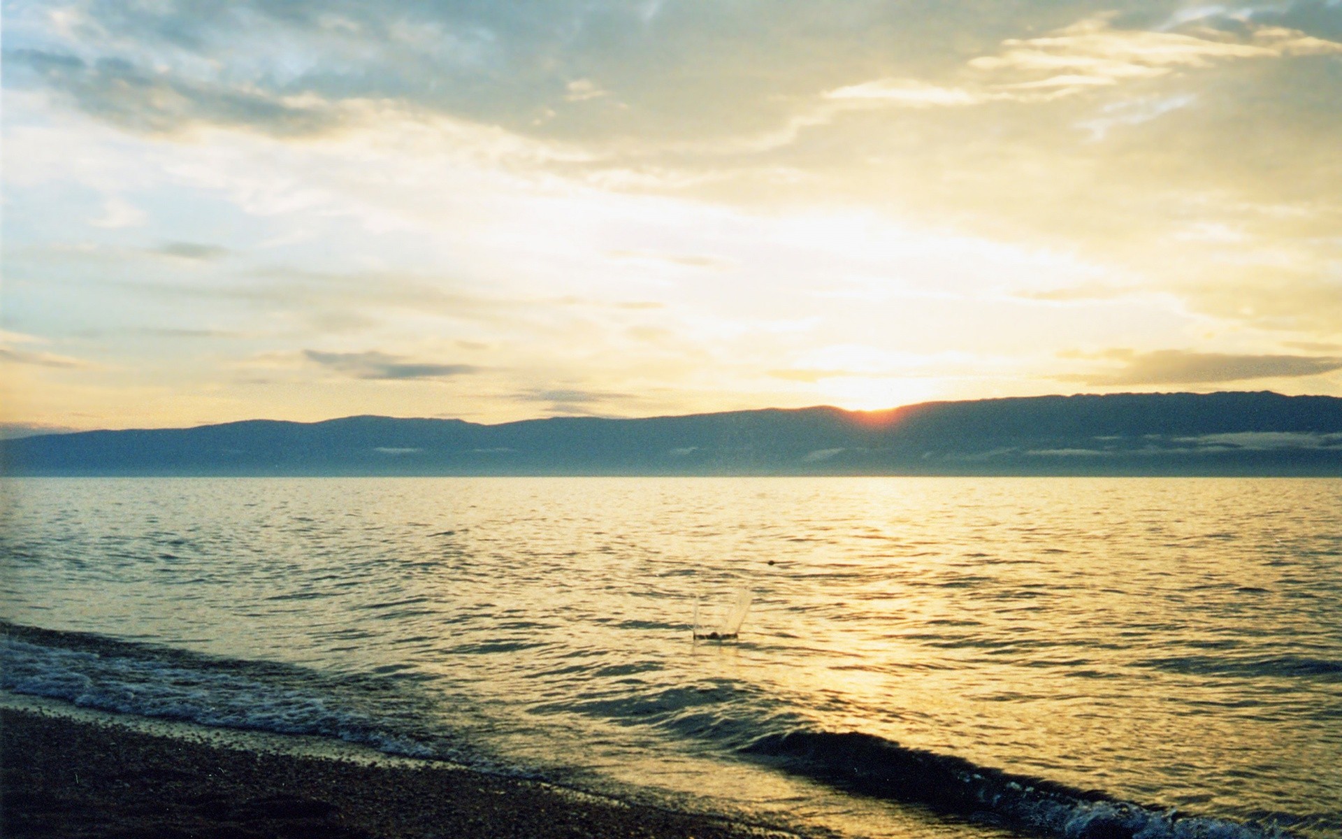 Coucher de soleil sur la rivière large. Dans le ciel des Cirrus multicolores