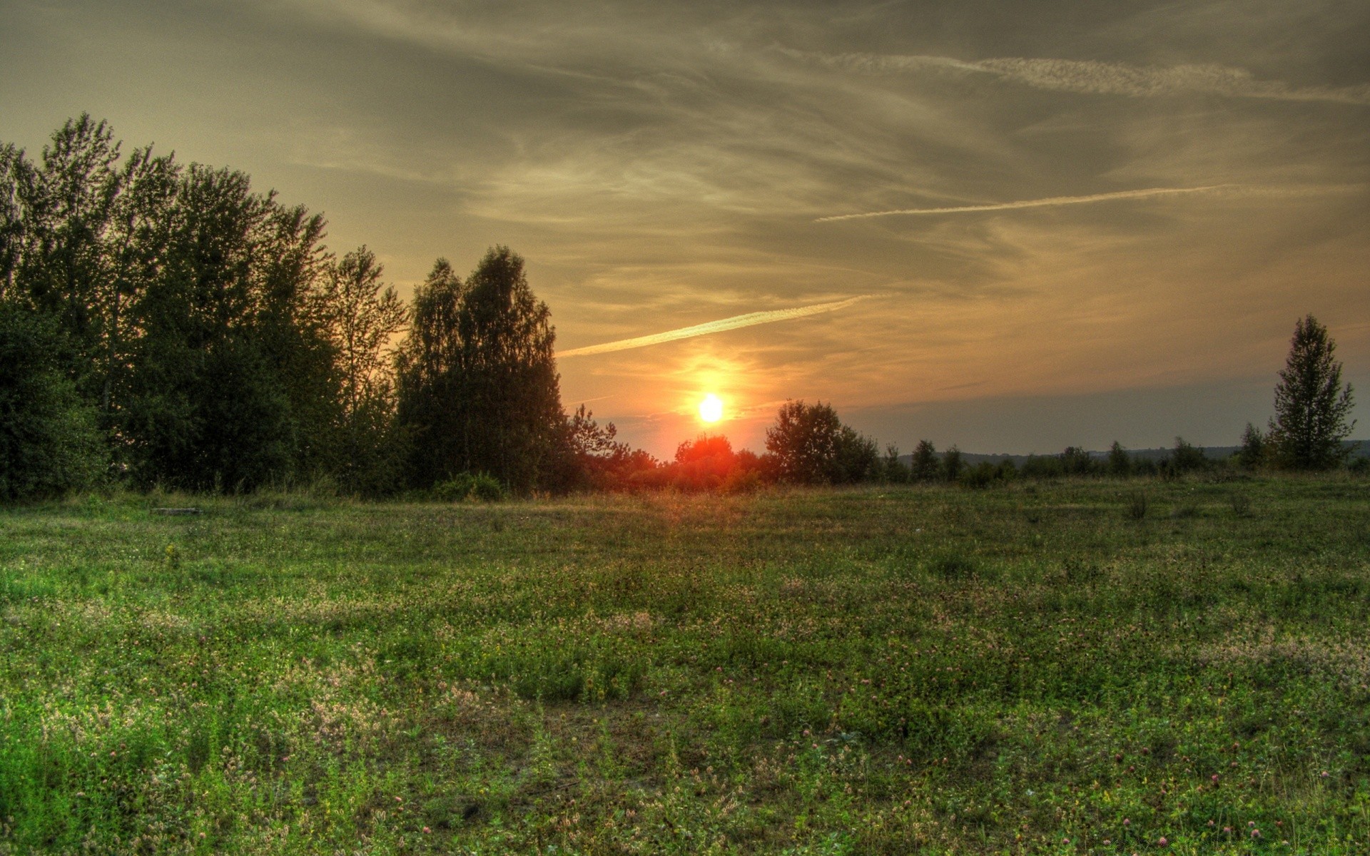 Coucher de soleil orange. Fond d'écran horizon