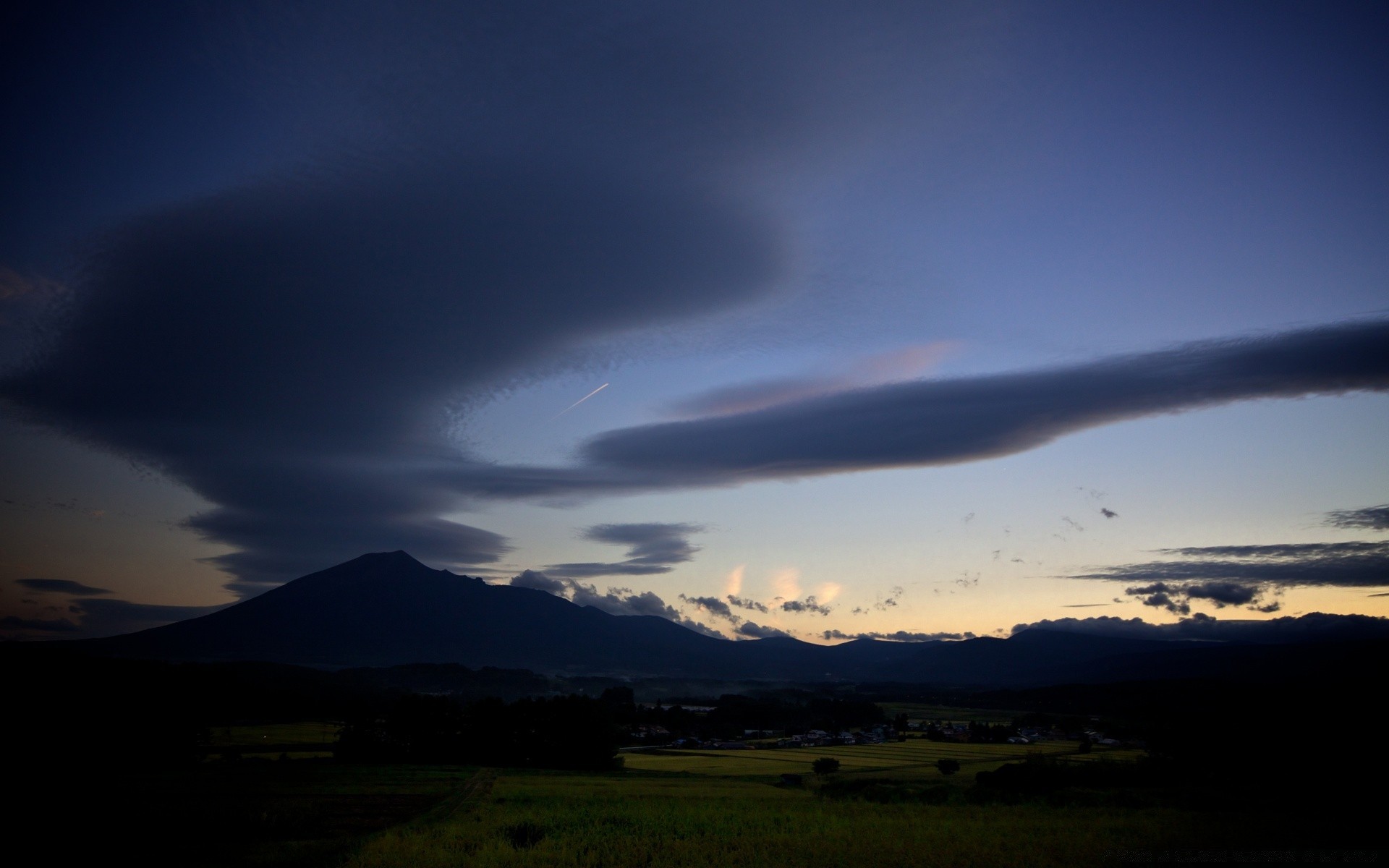 Montagnes au coucher du soleil jaune