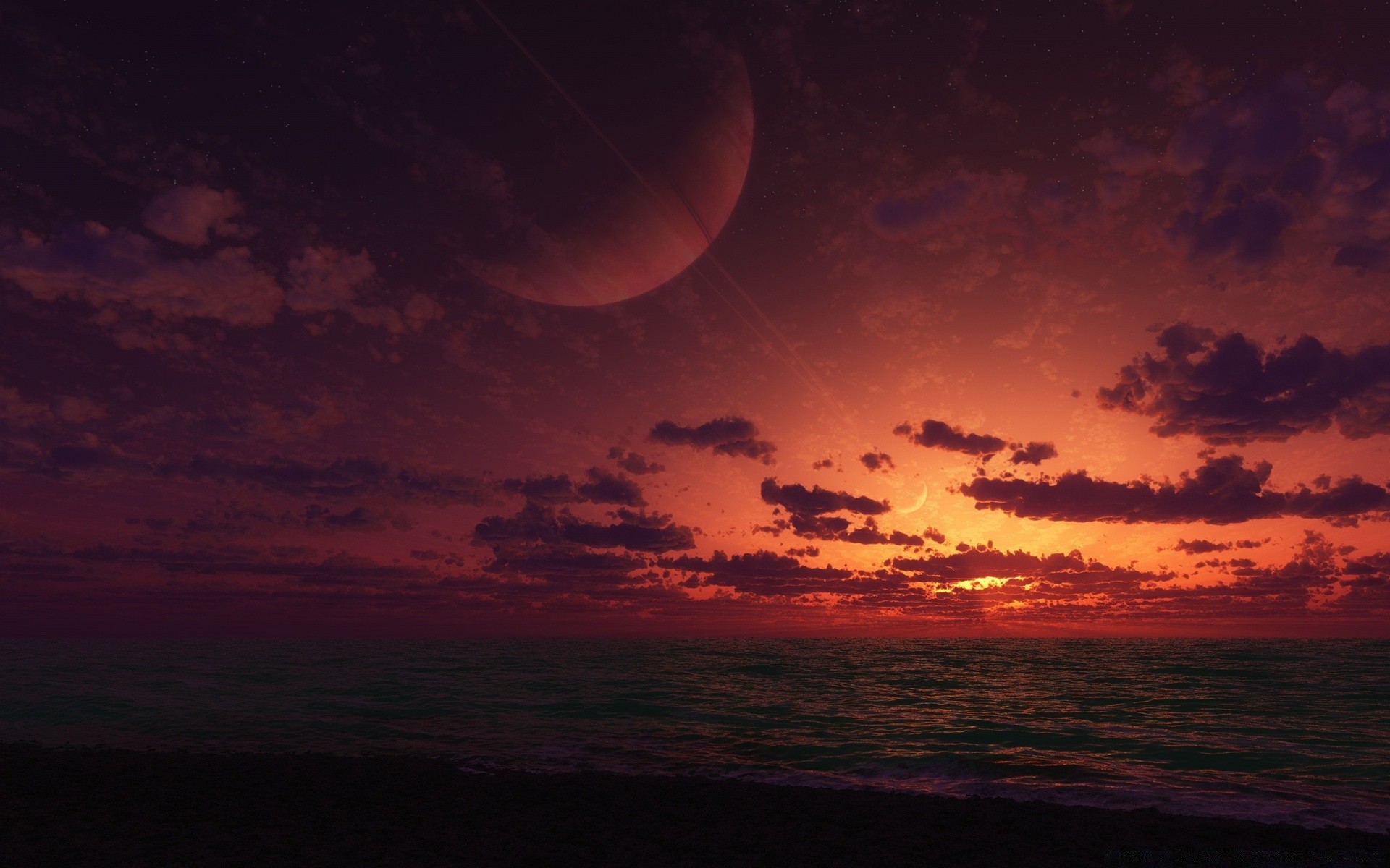 Coucher de soleil ou l'aube du soleil sur l'eau