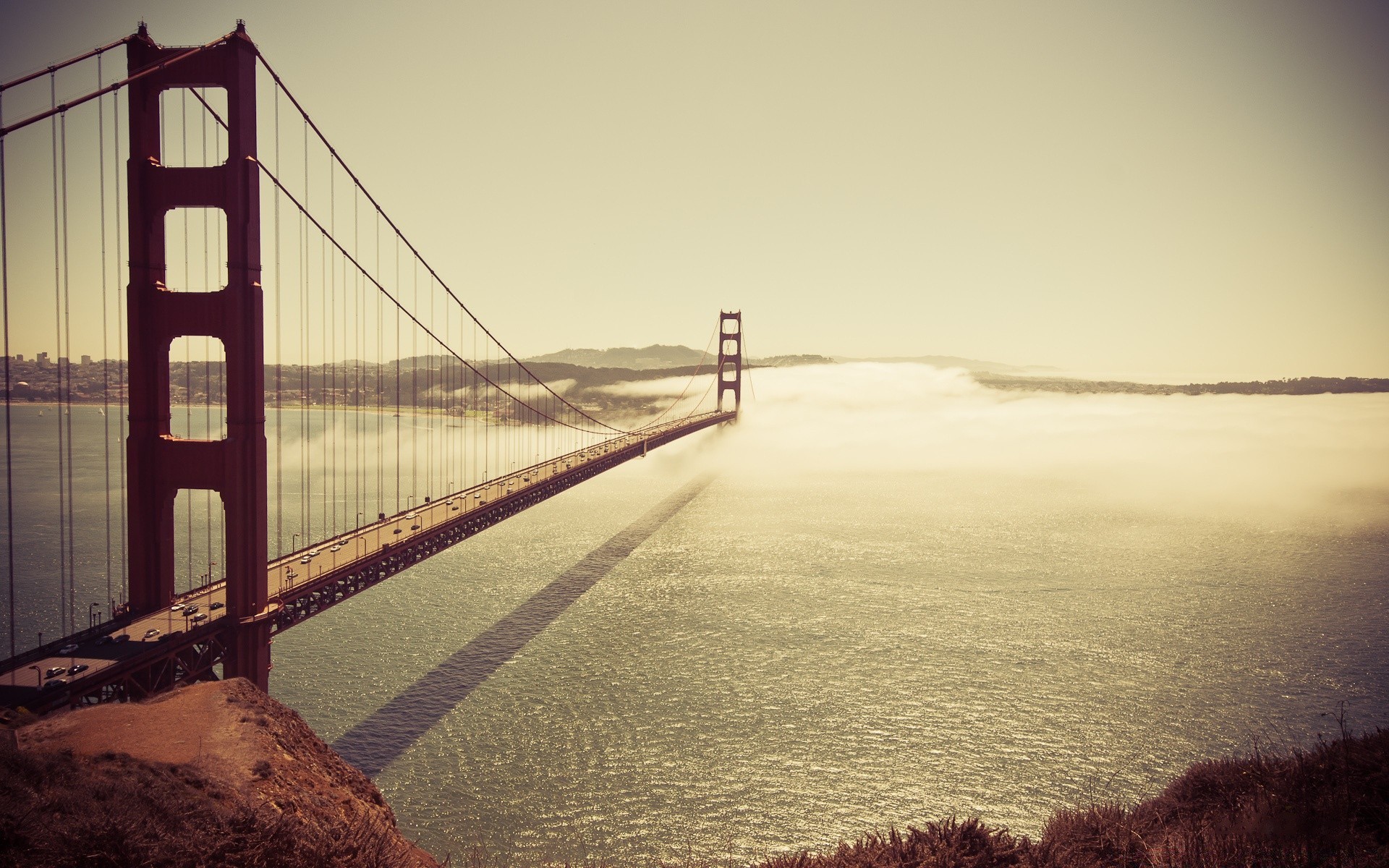 Brouillard lilas sur la forêt et les montagnes au coucher du soleil