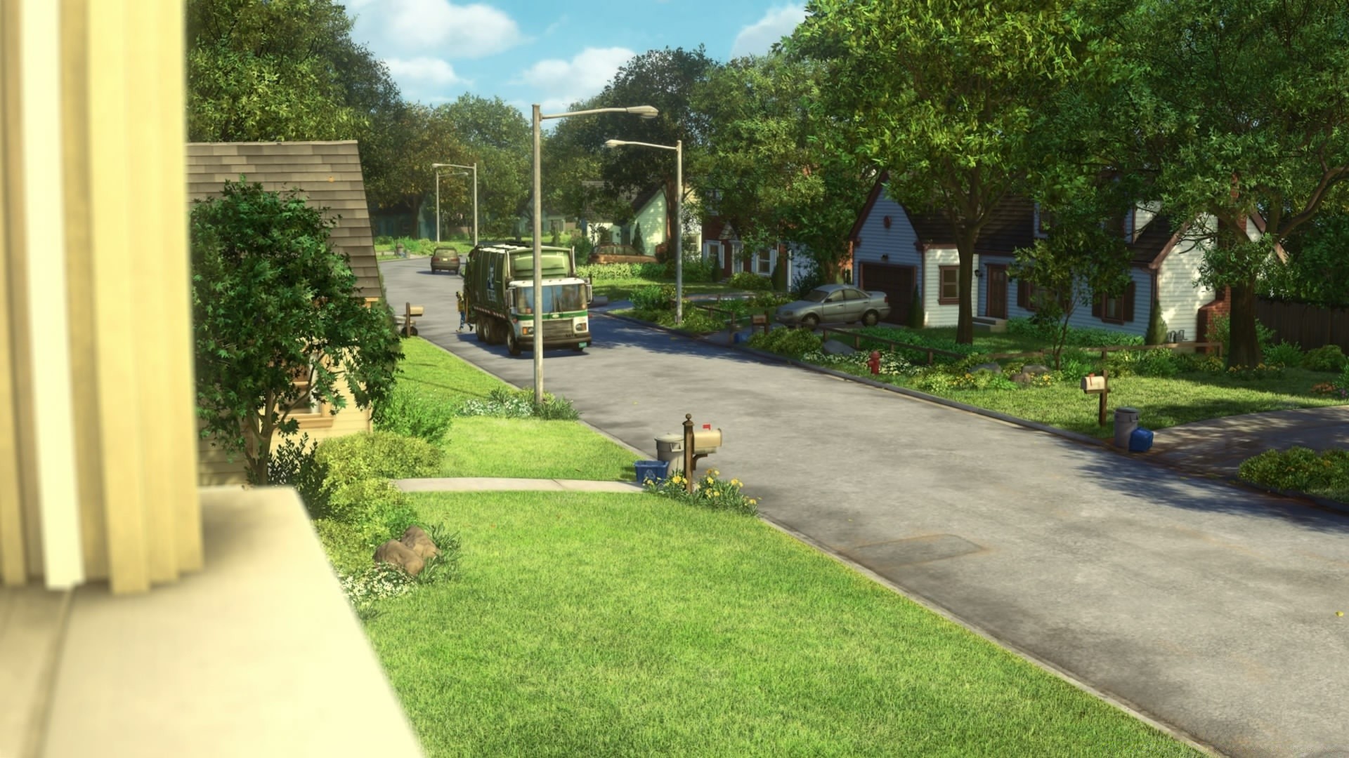 Camion vert se déplace dans la rue verte