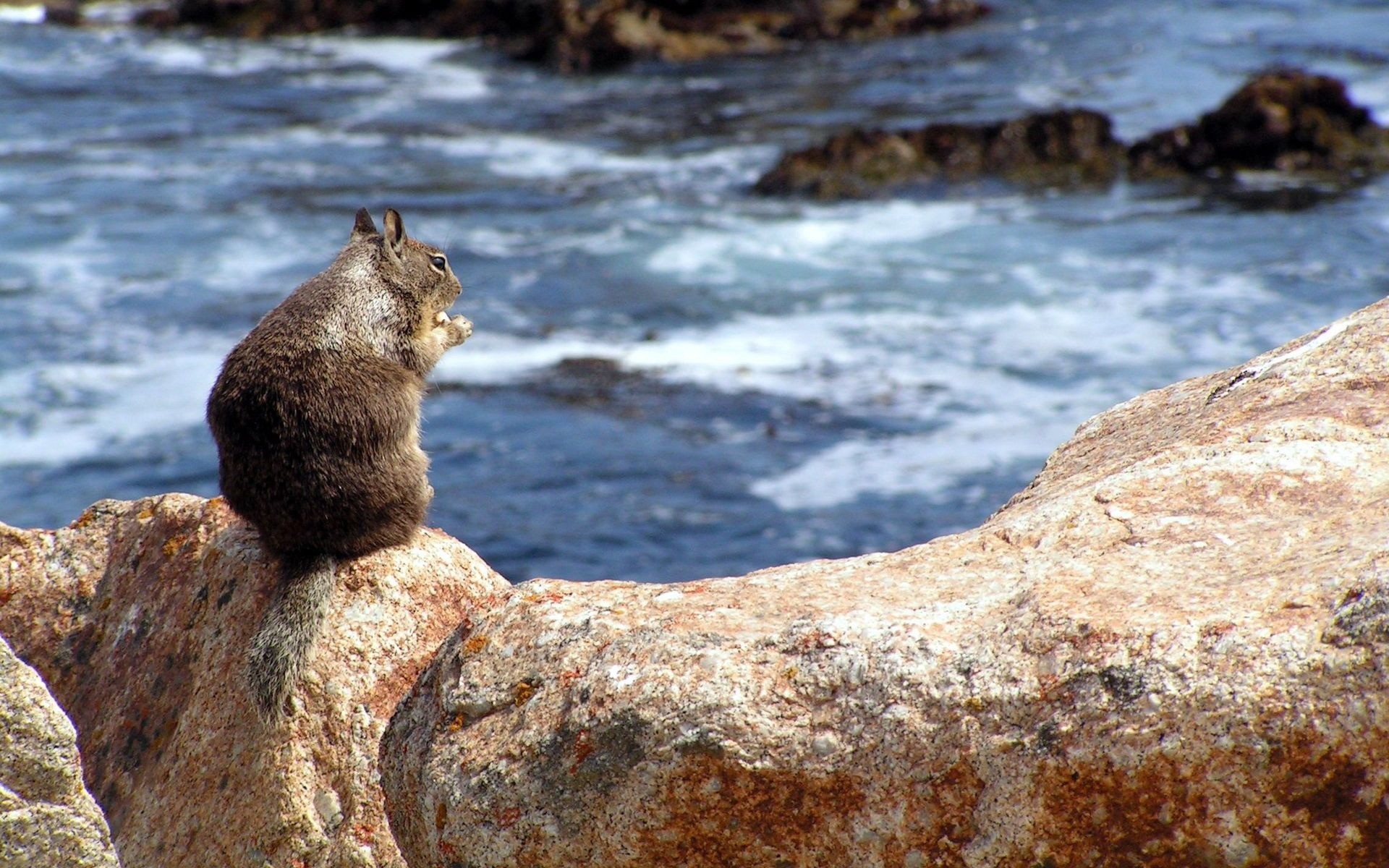 Solitaire assis sur un rocher au bord de la mer hamster sauvage