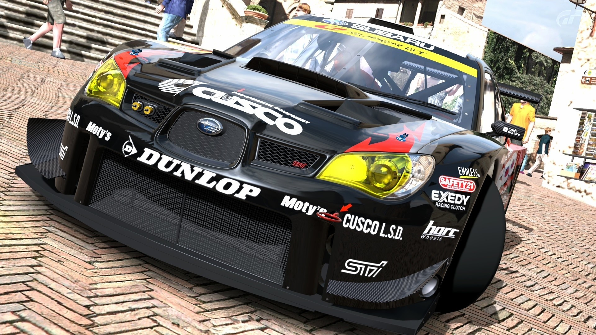 Voiture de course de couleur bleue près d'un haut bâtiment avec des colonnes