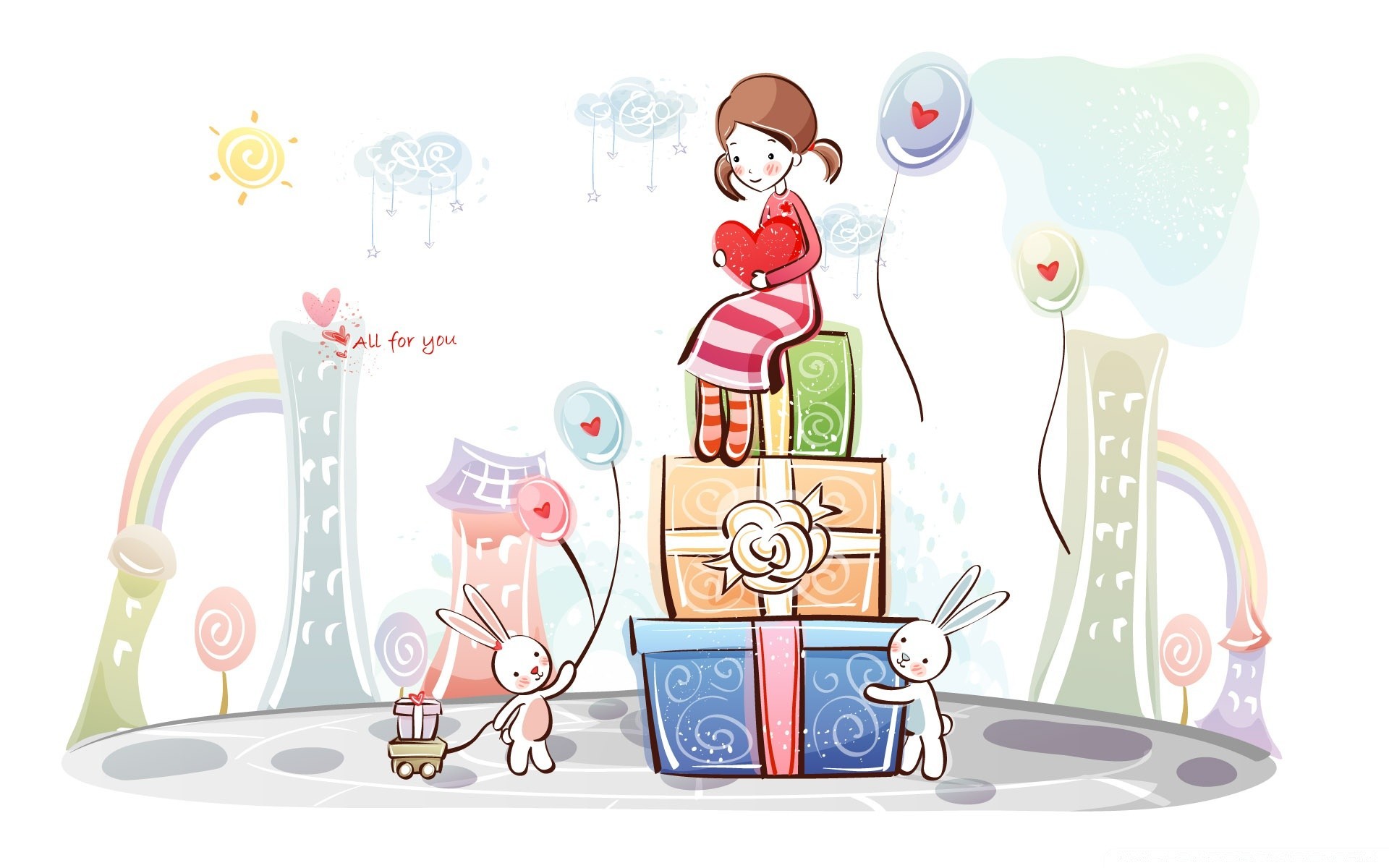 Fille assise sur une pyramide de cadeaux de la saint-valentinFille assise sur une pyramide de cadeaux de la Saint-Valentin