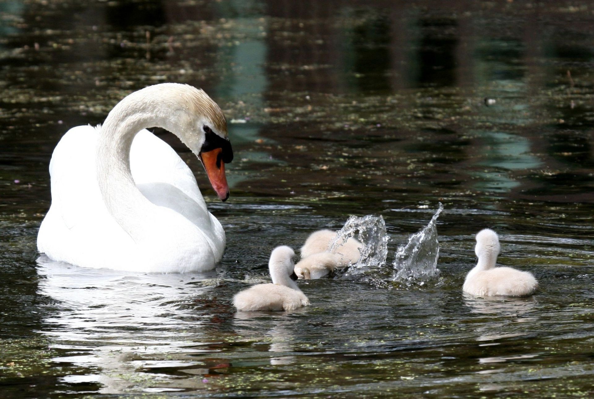 Deux cygnes sur l'eau. Cygne aux ailes ouvertes