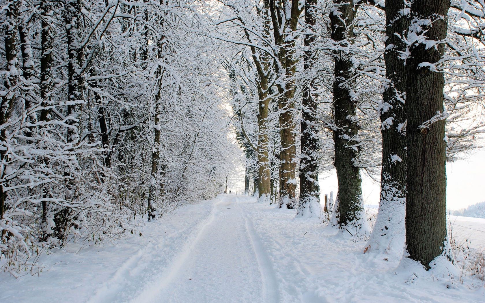 Piste d'hiver enneigée dans la forêt