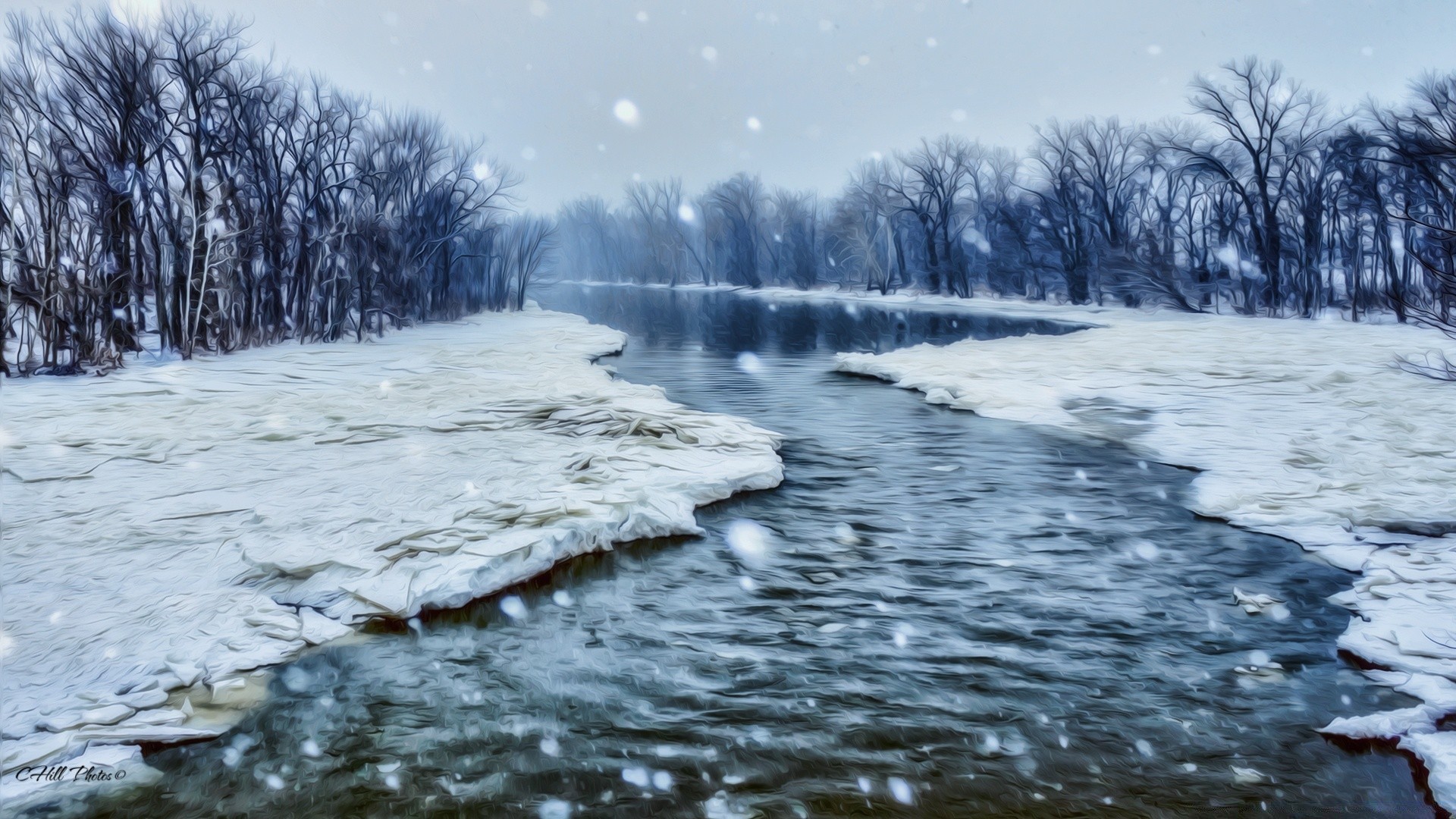 Arbres d'hiver dans la neige et des lanternes brûlantes