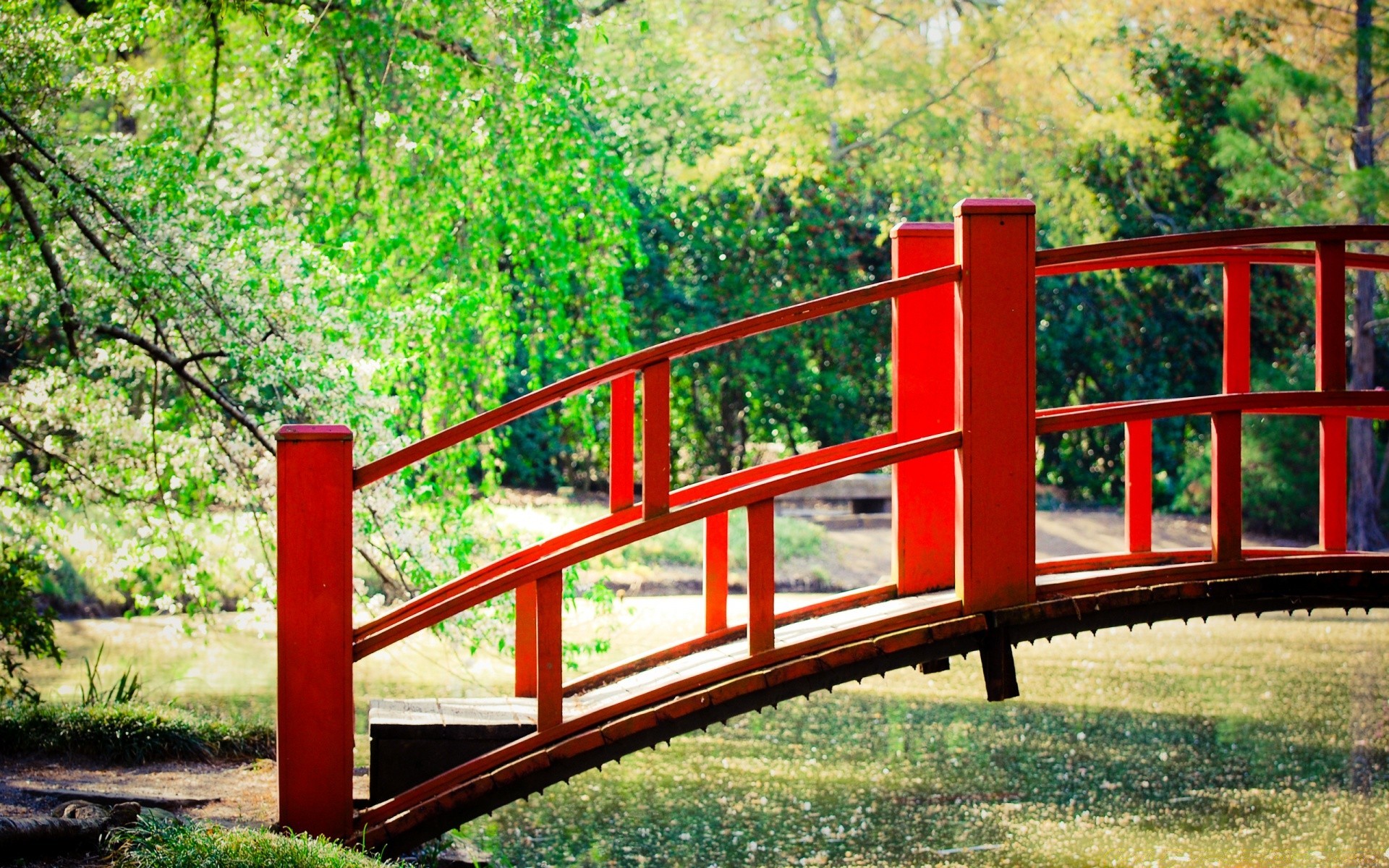 Pont en bois dans un parc calme
