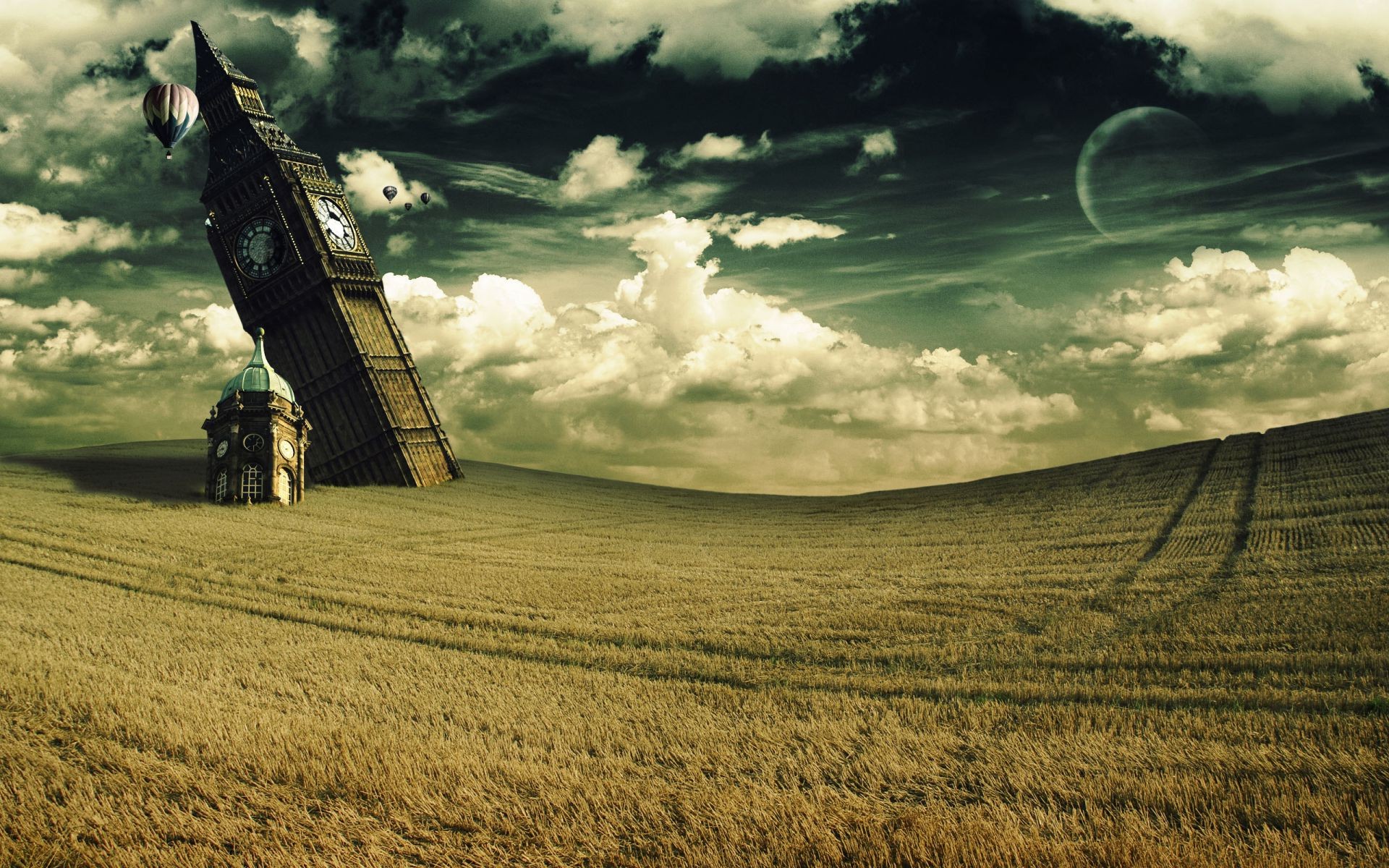 Regarder Big Ben dans un champ sur un fond de ciel nuageux