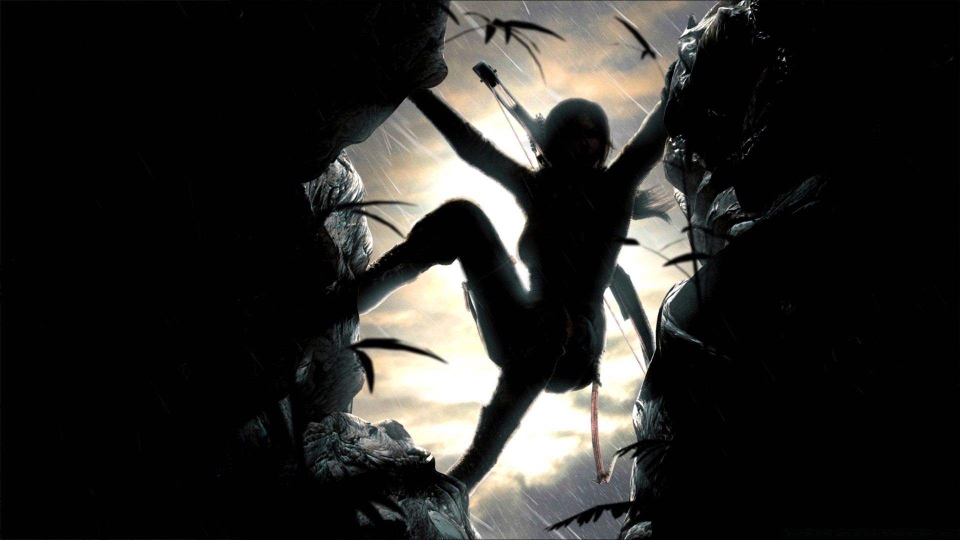 Fille avec un arc grimpe sur les rochers