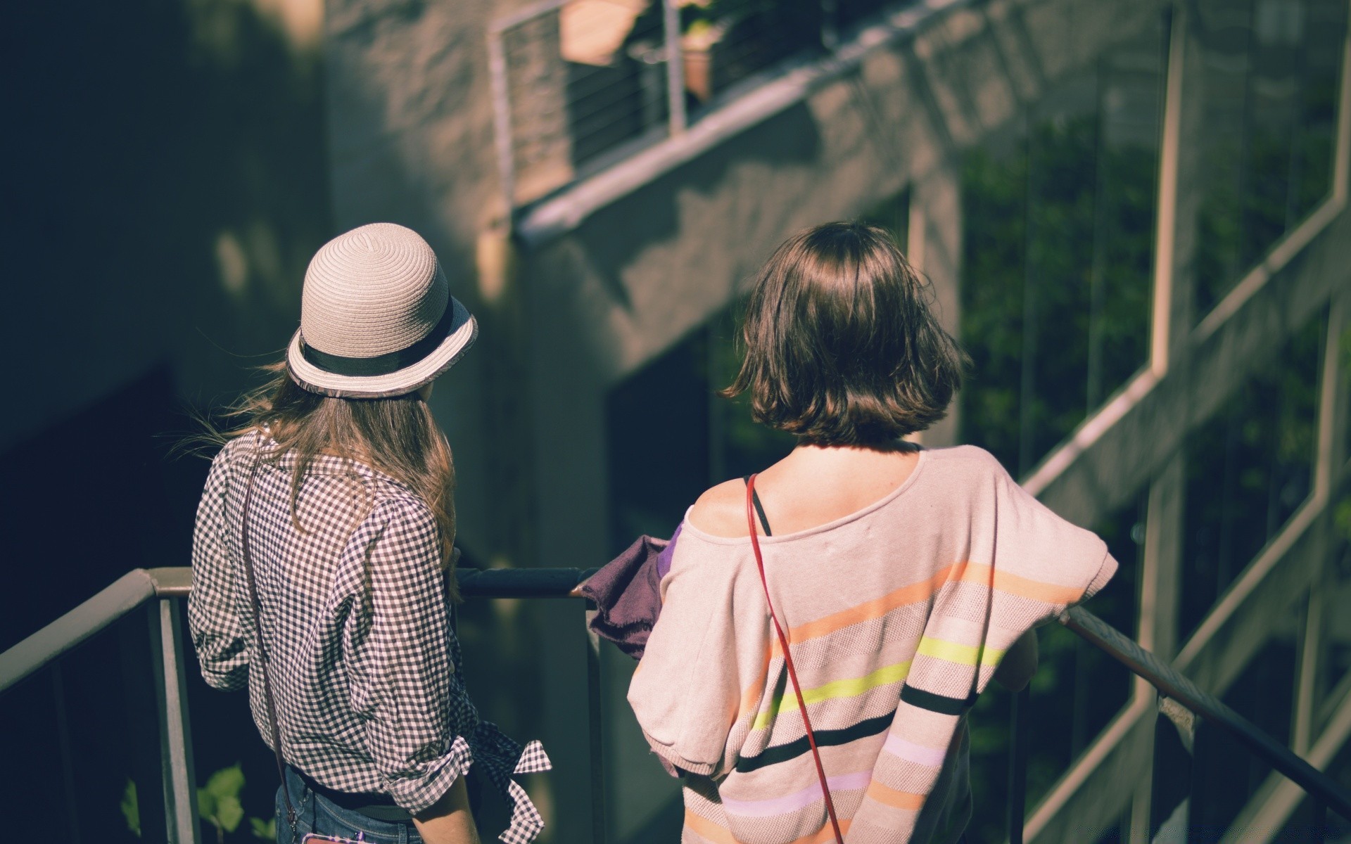 Deux filles debout sur les escaliers
