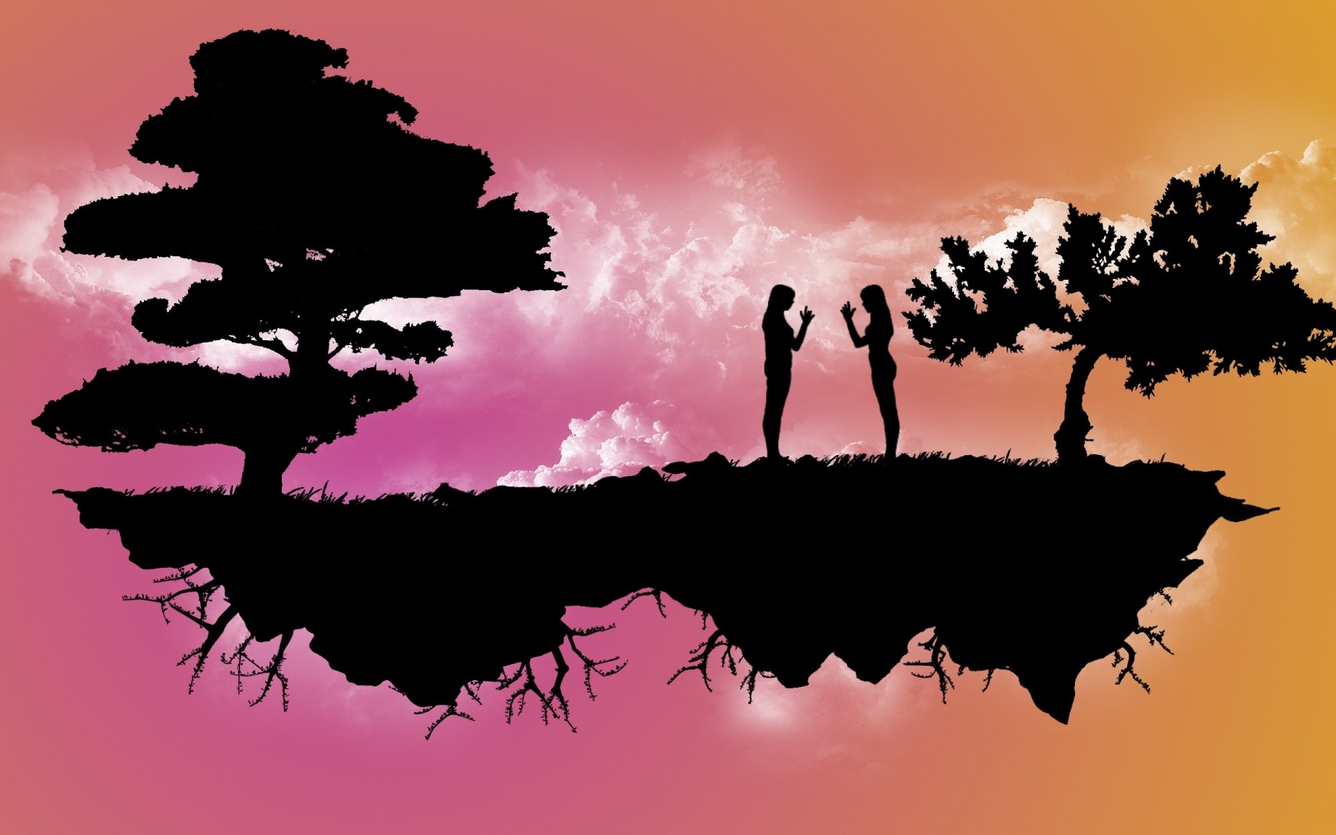 Image abstraite: deux au coucher du soleil entre les arbresImage abstraite: deux au coucher du soleil entre les arbres