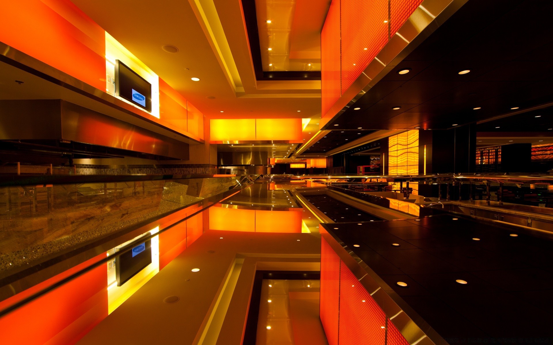 Les piliers du pont sont éclairés par des lanternes. Nuit noire