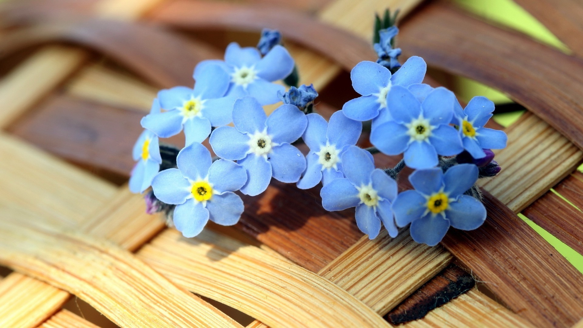 Fleurs bleues sur un panier en osier