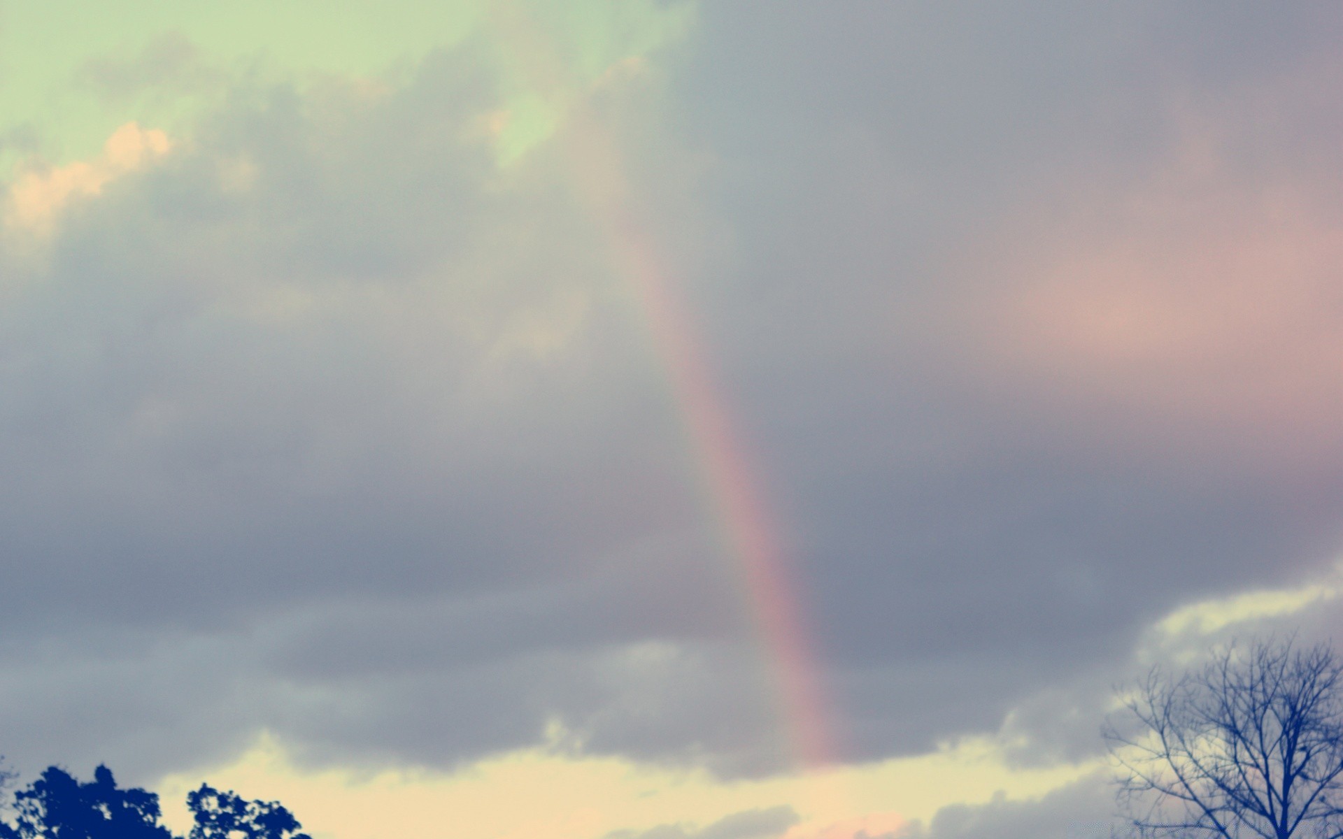Arc-en-ciel sur fond de ciel nuageux d'automne