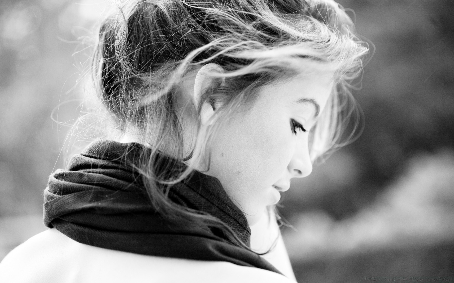 Femme avec appareil photo sur les photos couleur et noir et blanc