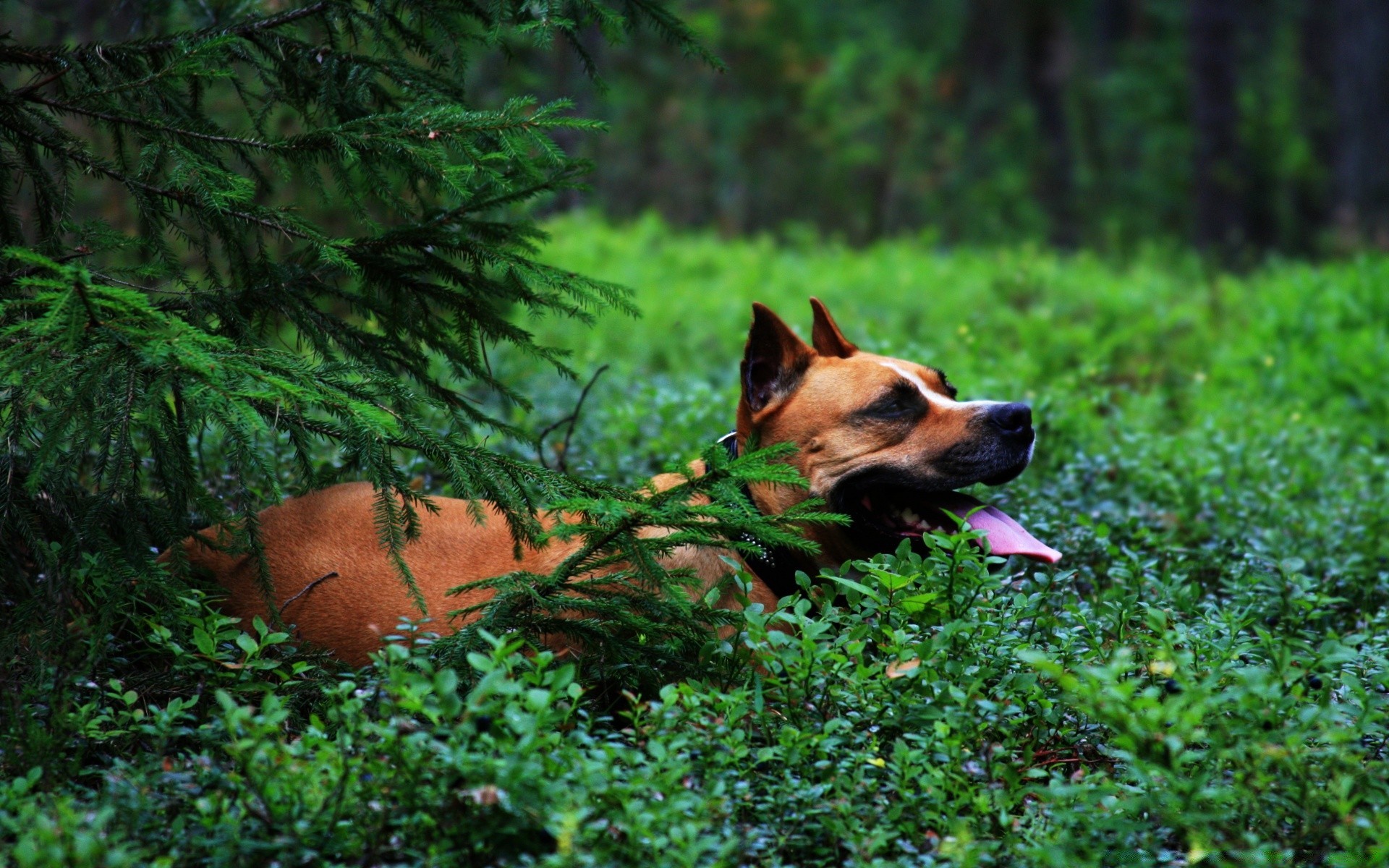 Chien brun dans la nature. Chien à côté de l'arbre de Noël