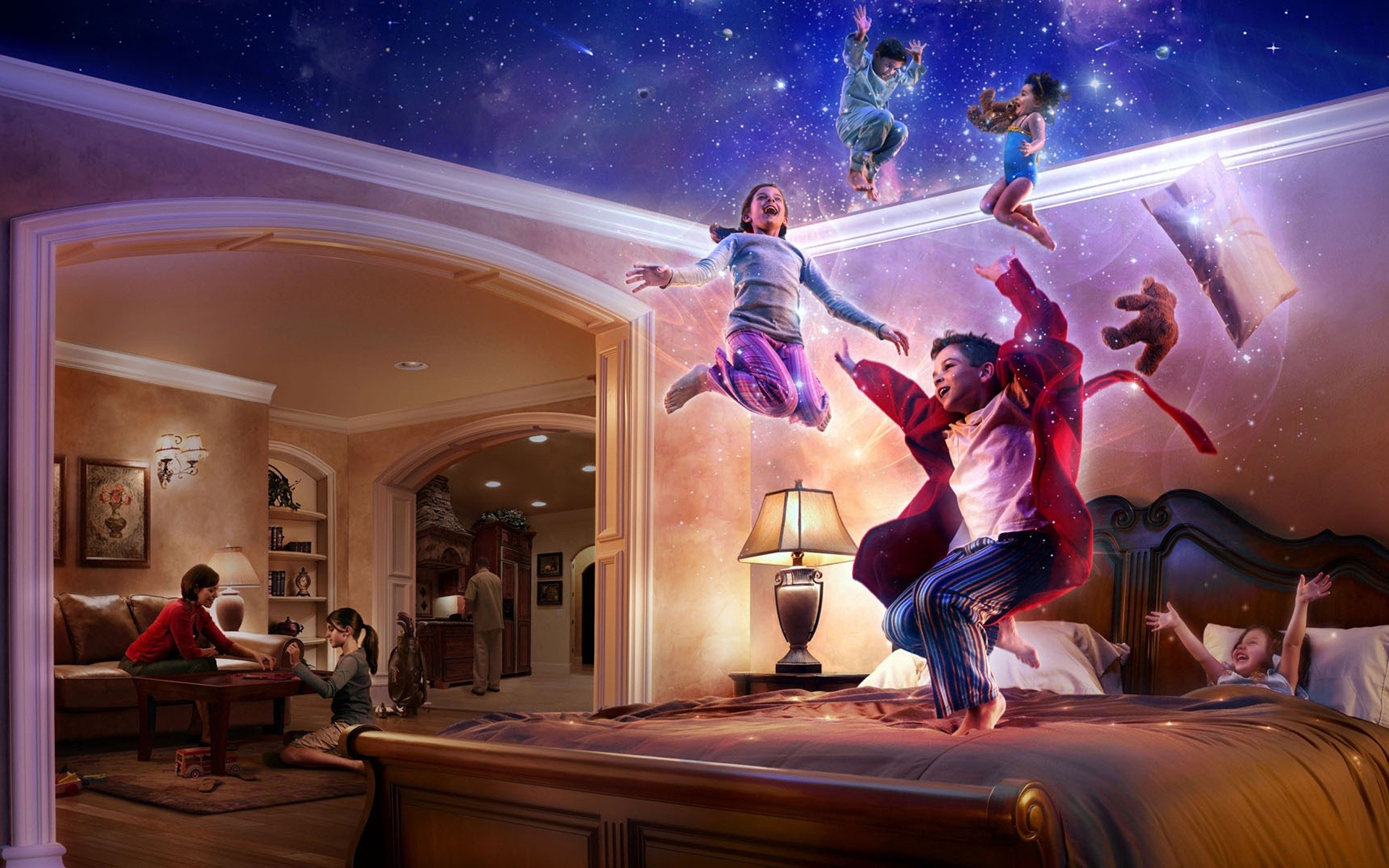 Fantaisie de soirée amusante dans la maison avec les enfants