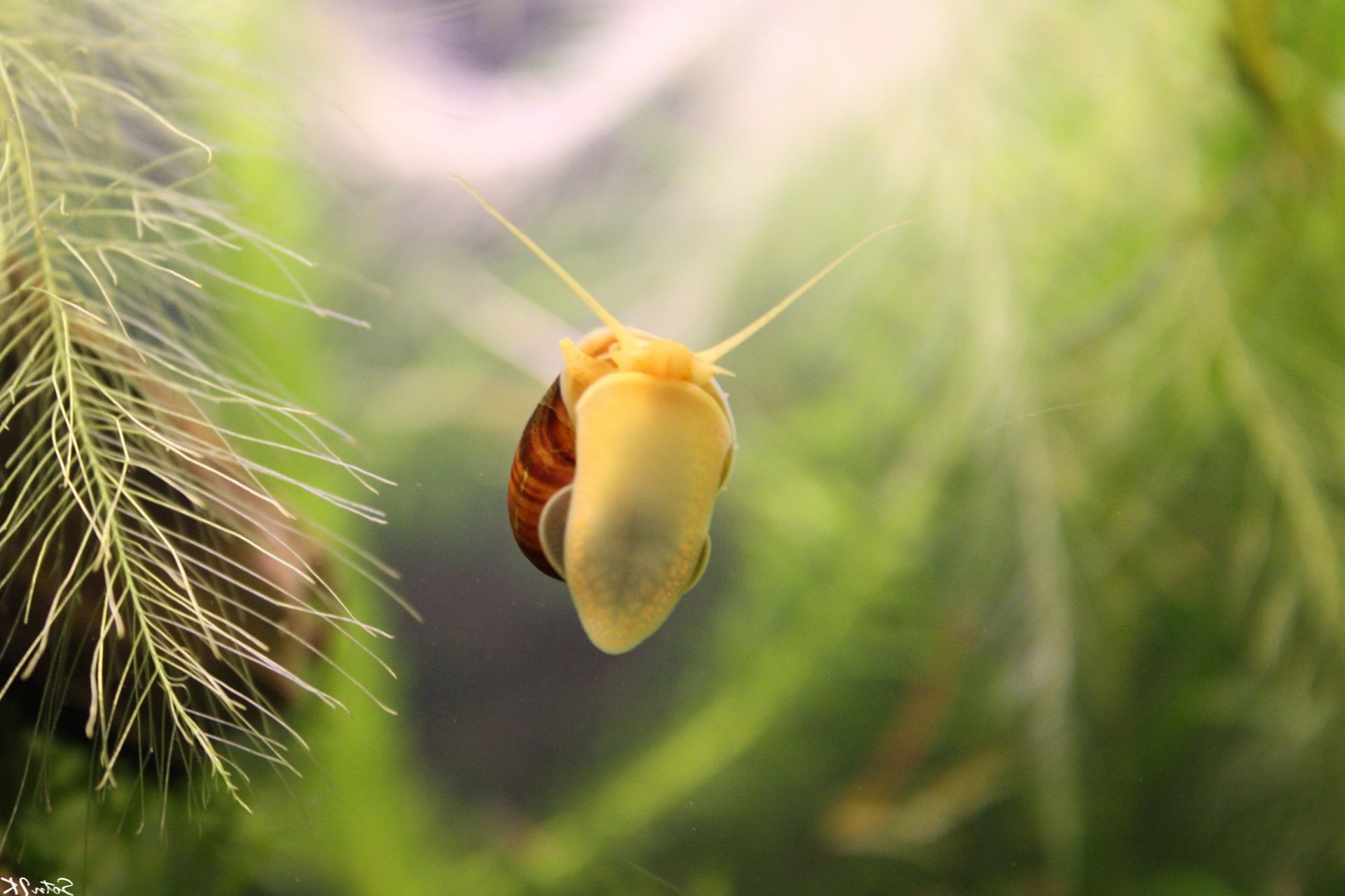 Escargot sur une branche verte
