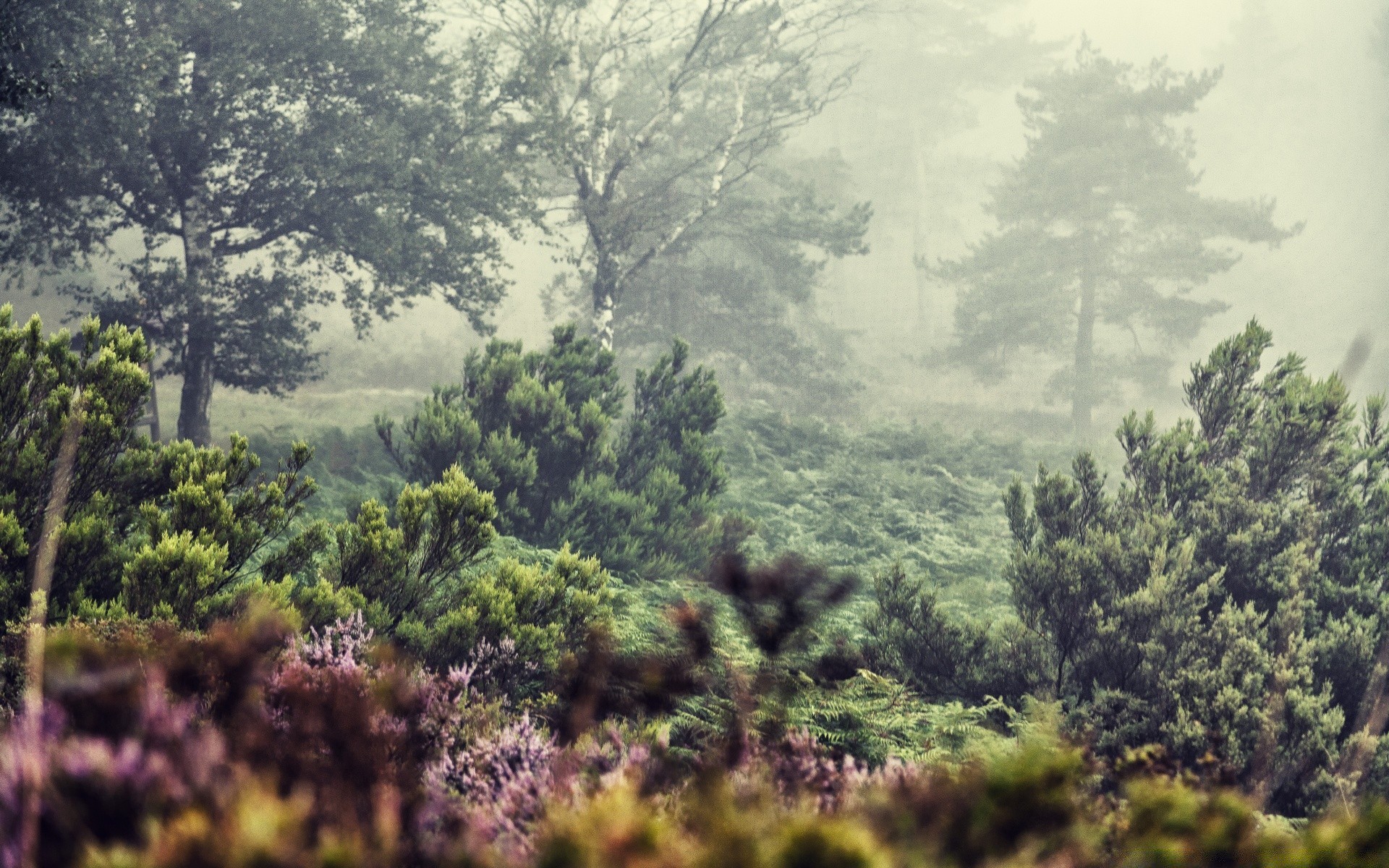 Paysage brumeux dans la forêt
