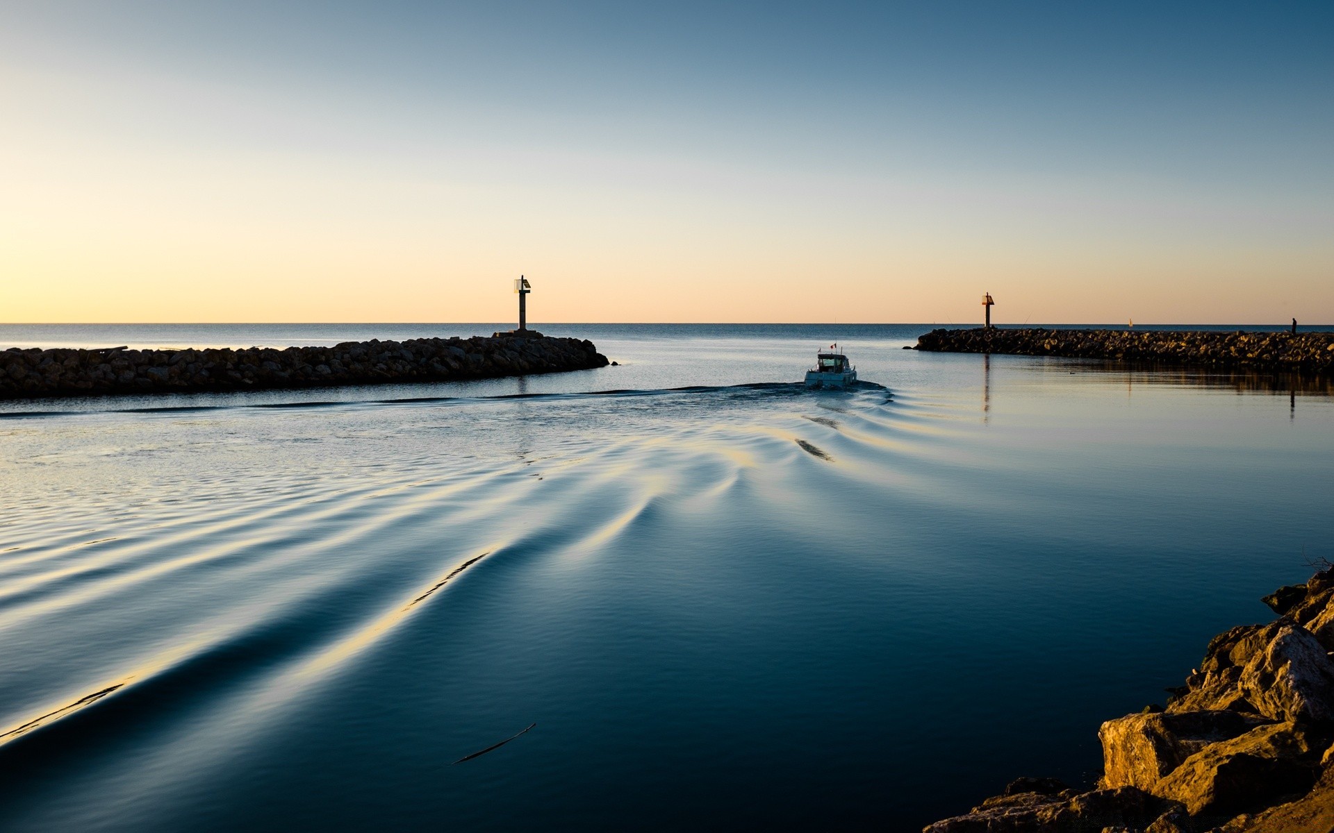 Photo noir et blanc d'un coucher de soleil sur l'océanPhoto noir et blanc d'un coucher de soleil sur l'océan