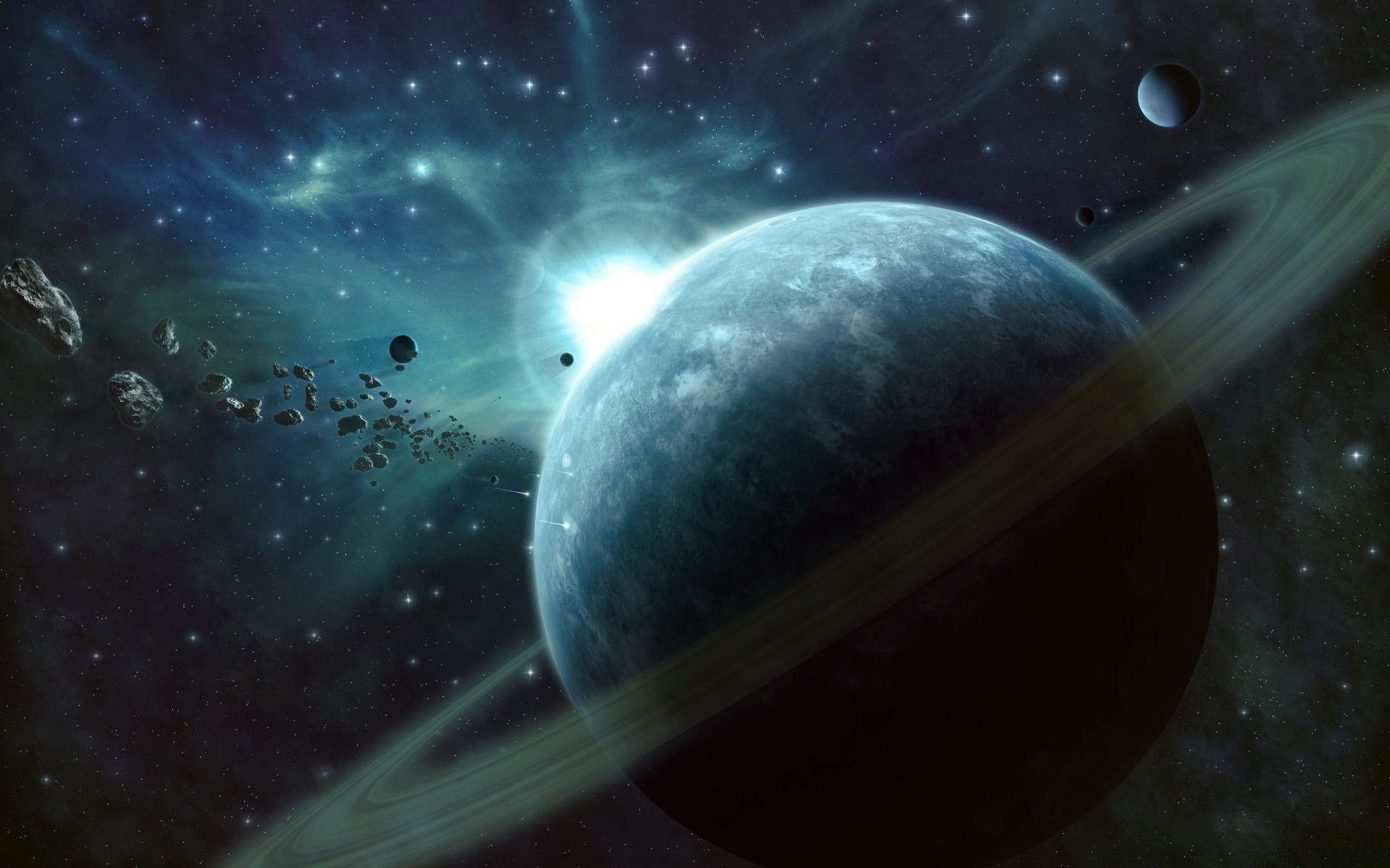 Image créative d'une planète avec des îles vertes et des mers dans l'espaceImage créative d'une planète avec des îles vertes et des mers dans l'espace