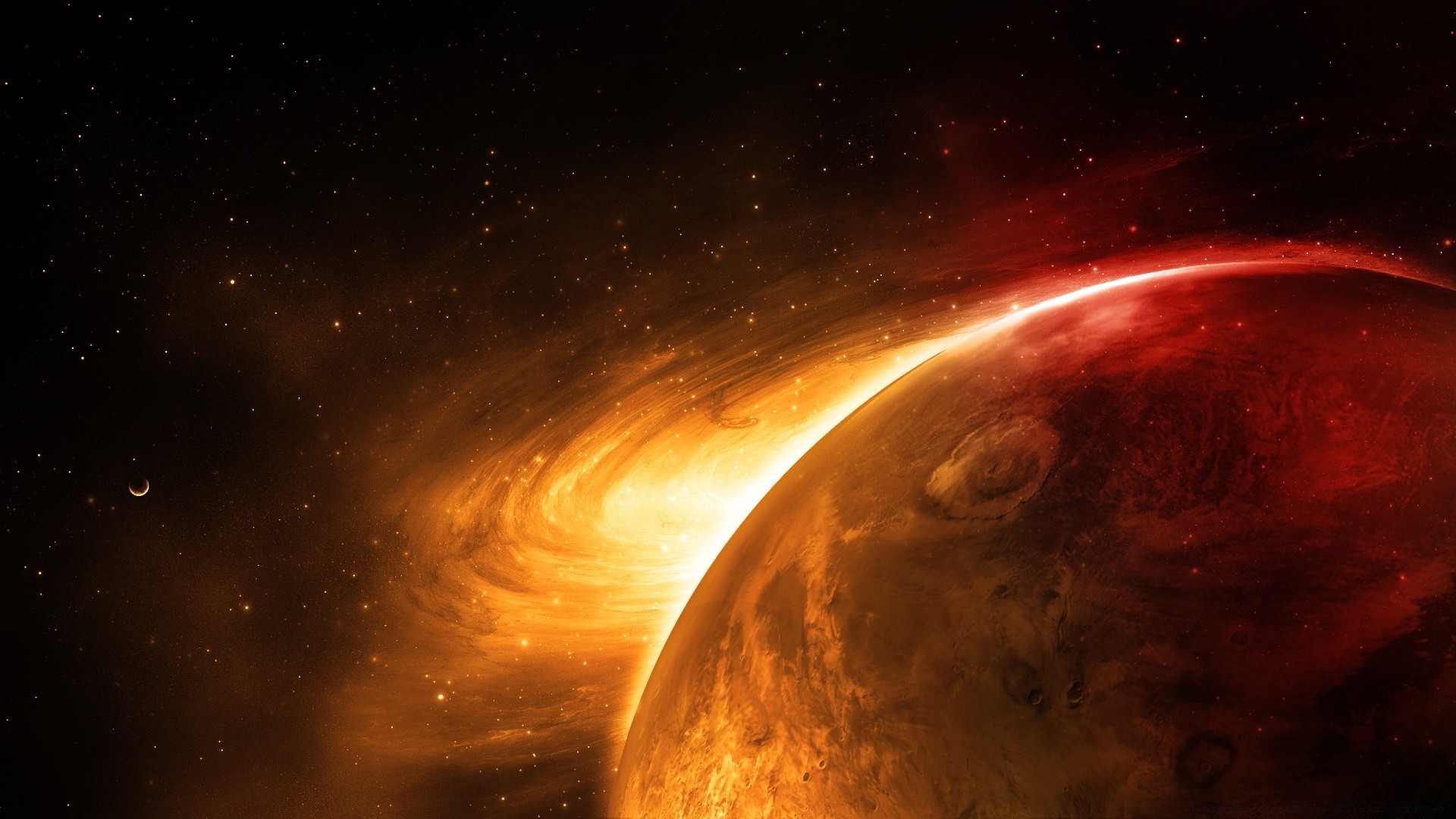 Planète Lune dans les rayons du soleil