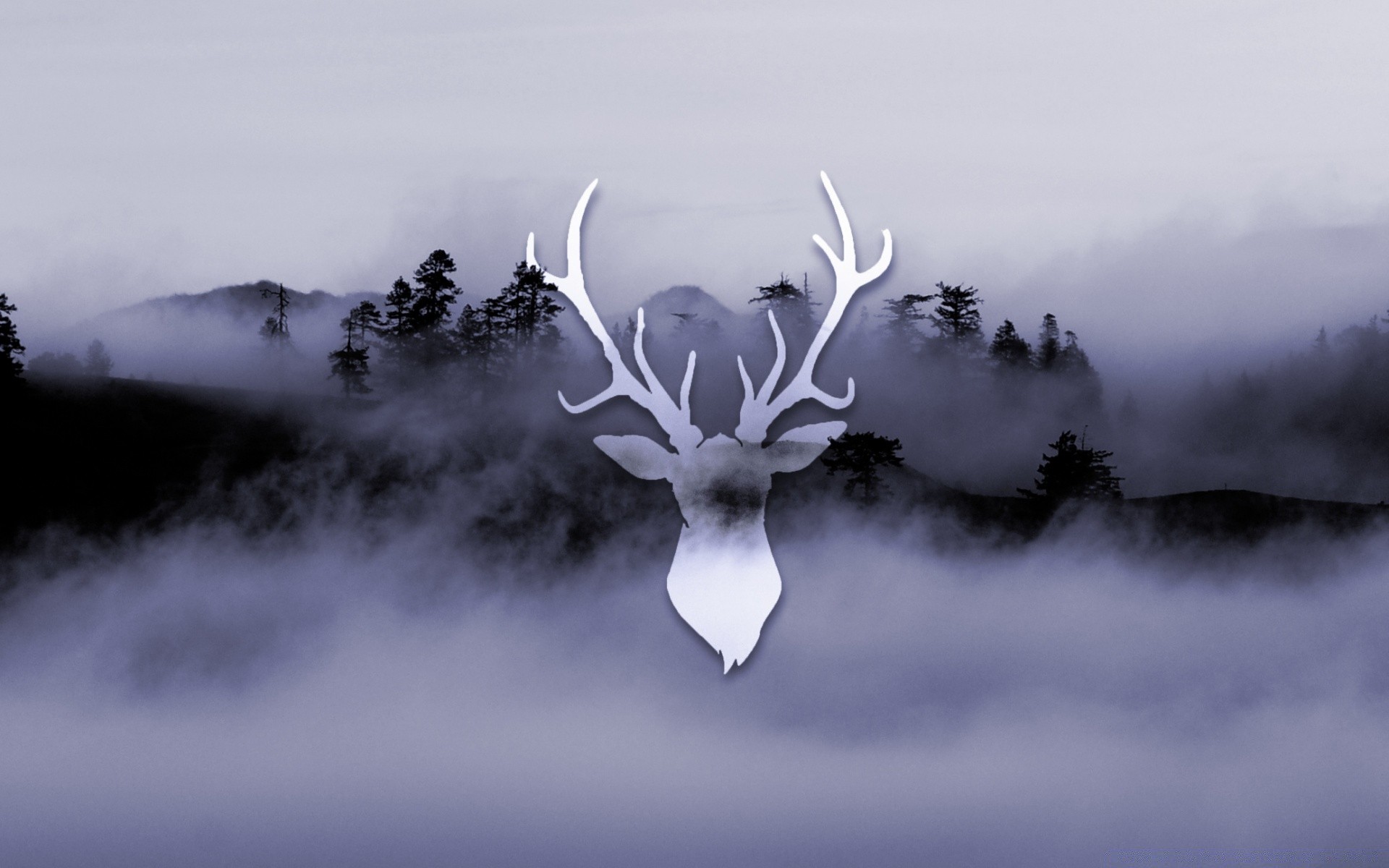 Fabrication de cerfs sur fond de forêt dans le brouillard