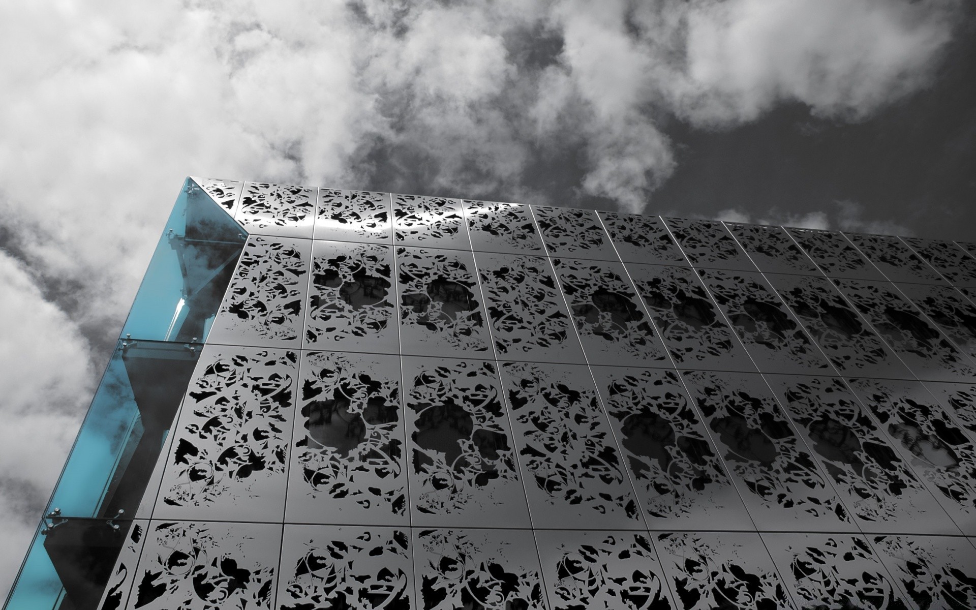 Maison haute gris sur fond de ciel bleu