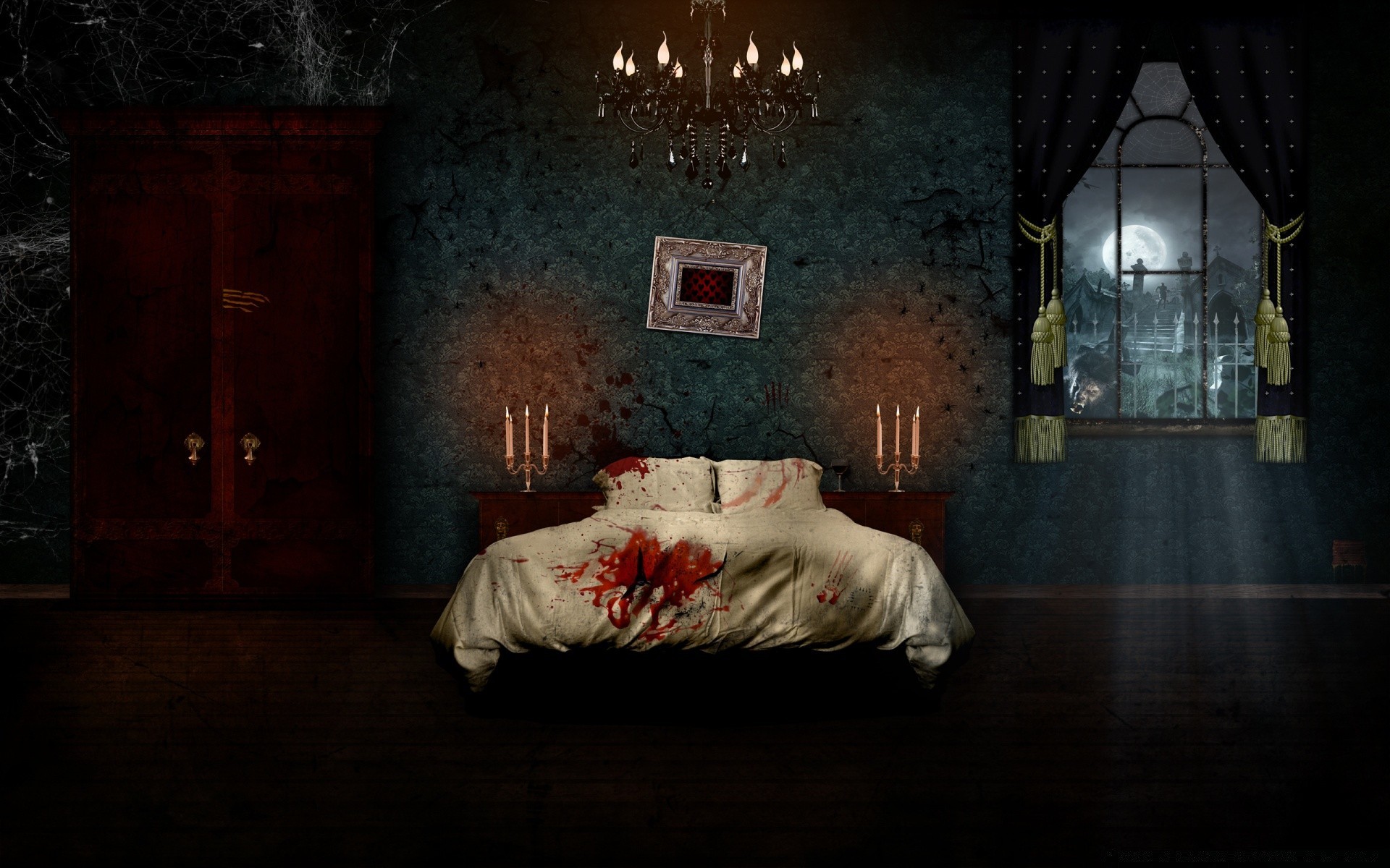 Un lit ensanglanté dans la maison