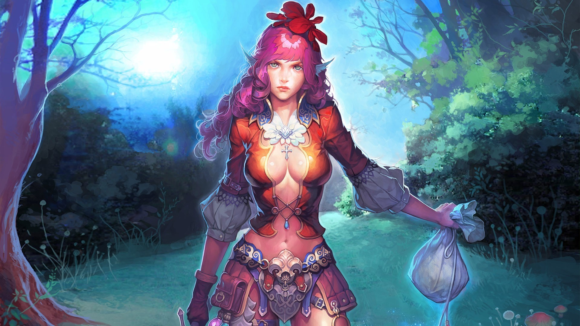 Créature fantastique moitié tigre, moitié arbre marche sur la route devant les lanternes orange