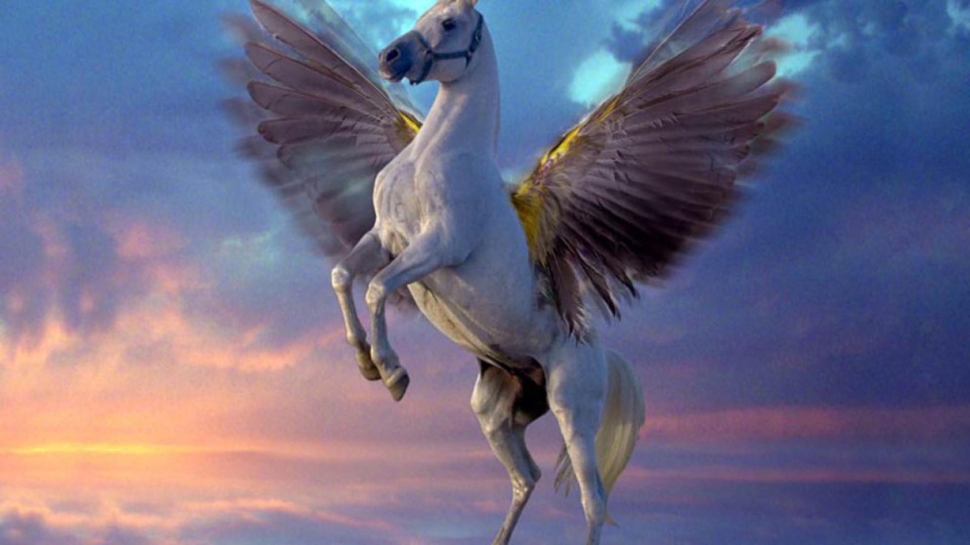 Un dirigeable fantastique survole la mer au coucher du soleil