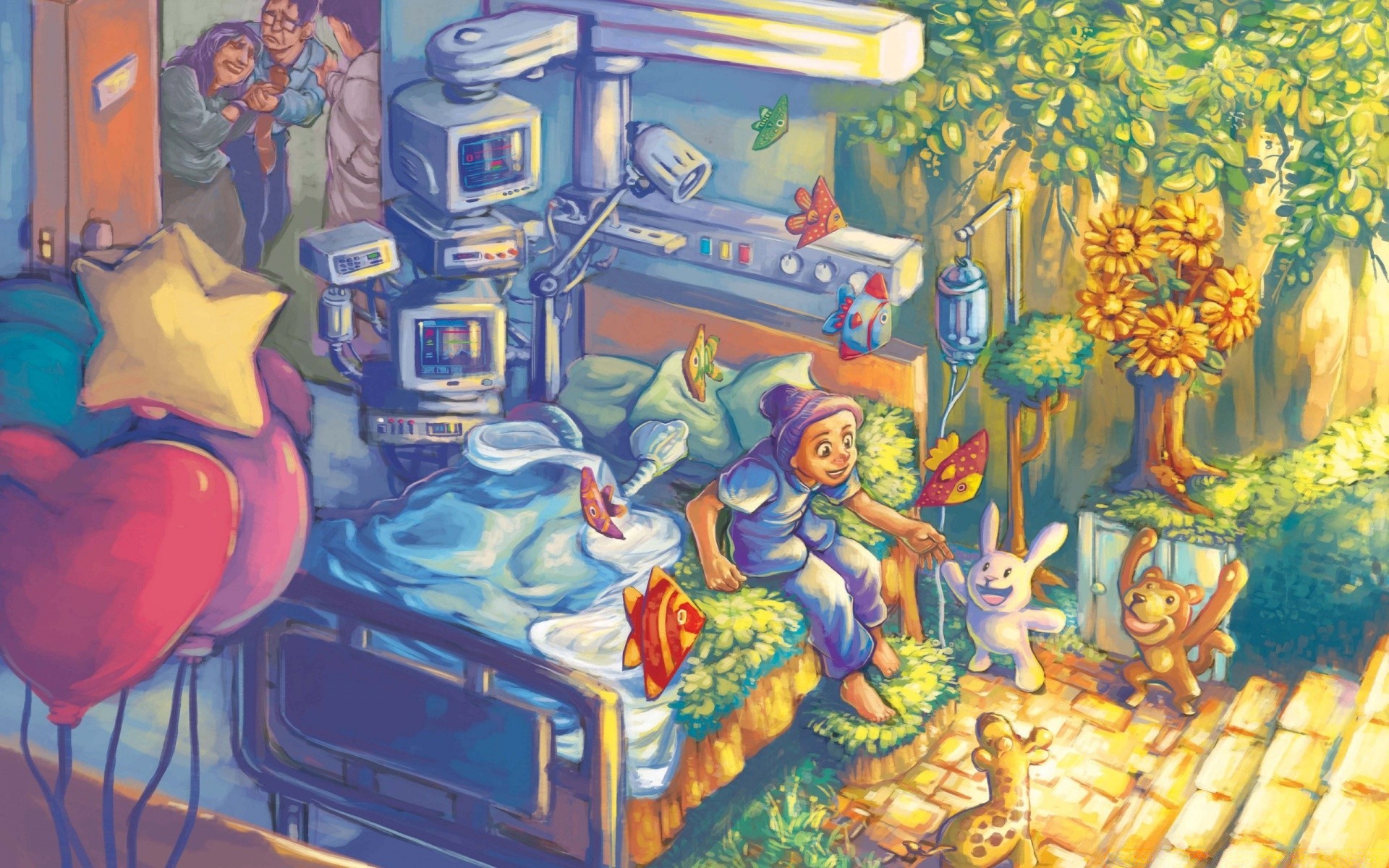 Illustration d'une maison fantastique avec des résidents